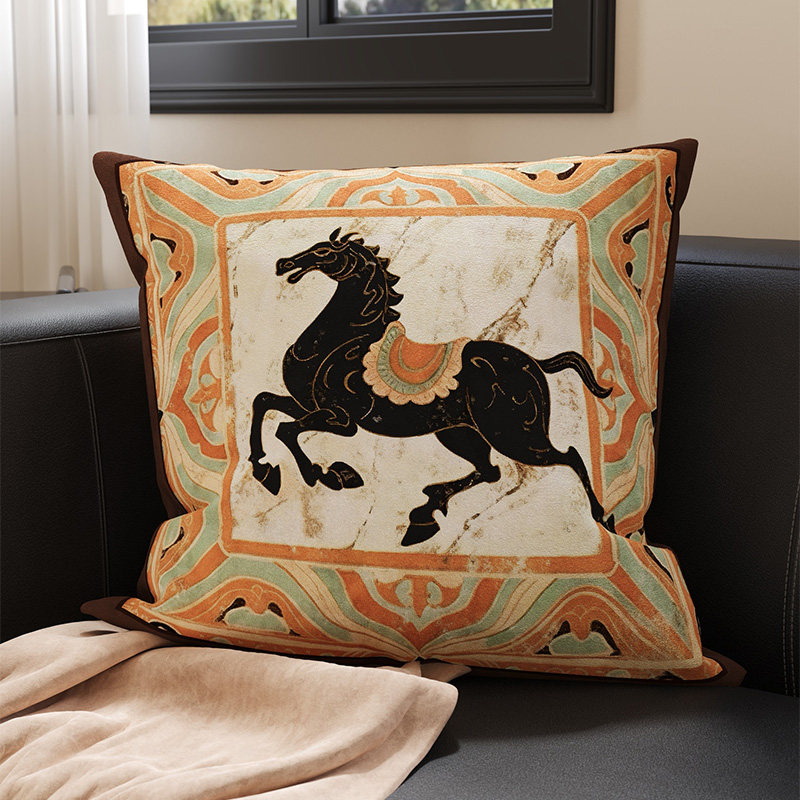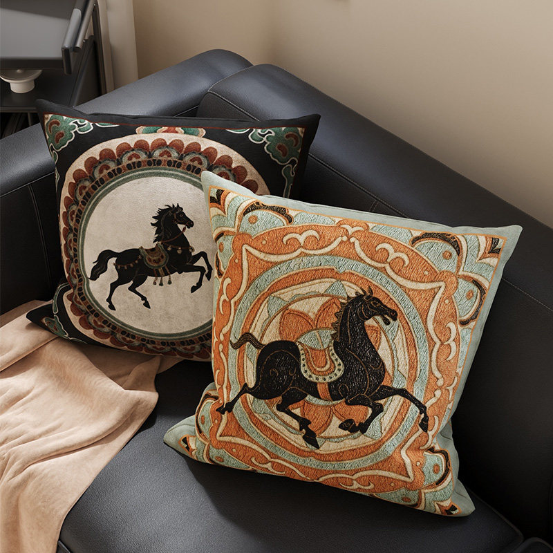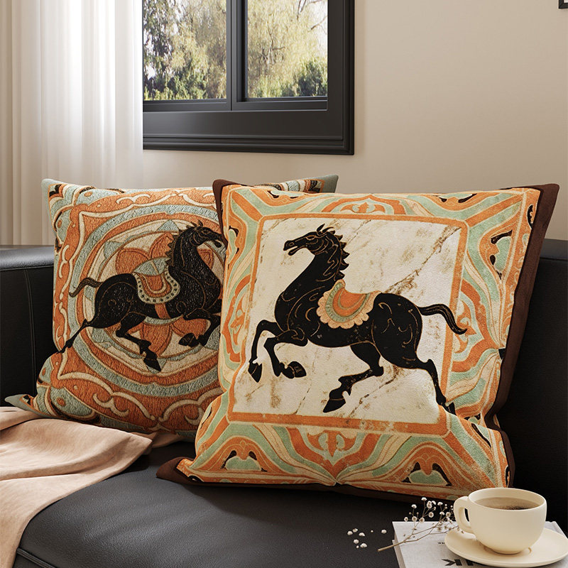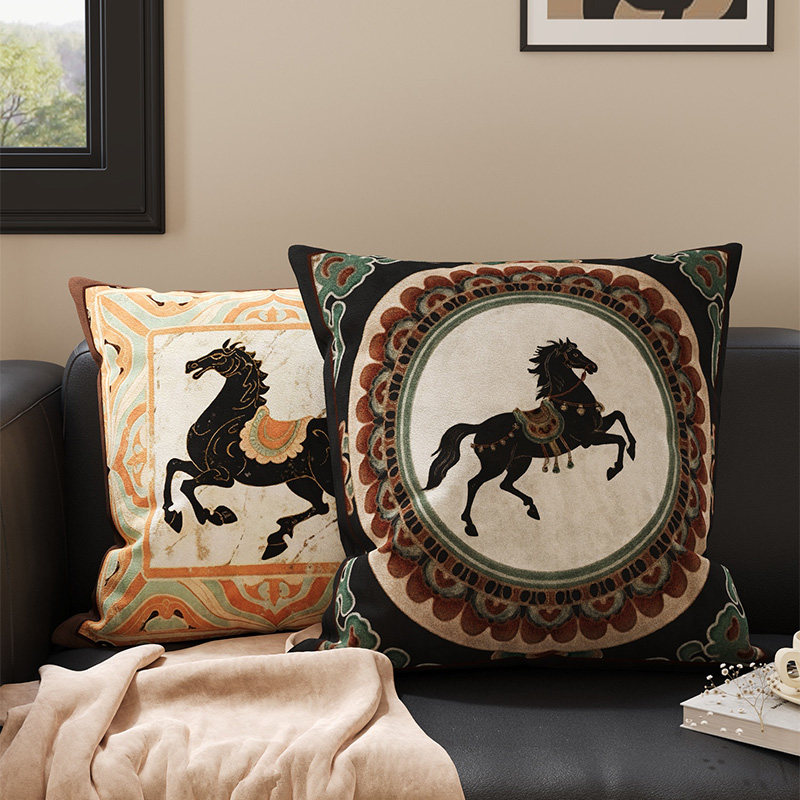 中古风马年沙发抱枕敦煌复古高级靠枕可拆洗抱枕套含芯卧室靠背垫