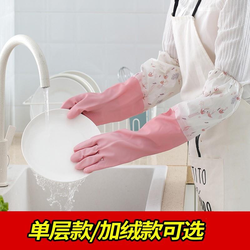 秋冬坐月子洗碗加绒防水手套女家务厨房清洁隔热洗衣服产妇橡胶皮