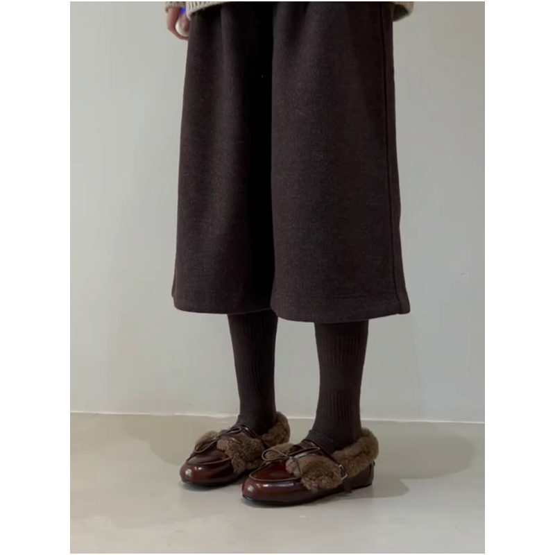 羊皮版~复古圆头厚底一脚蹬平底乐福鞋英伦风小皮鞋女内增高加绒