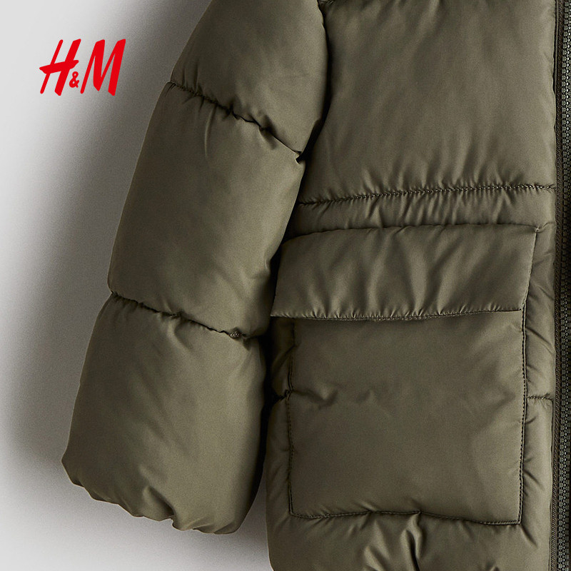 HM童装儿童男童棉服冬季保暖立领长袖拉链疏水连帽棉袄1232402
