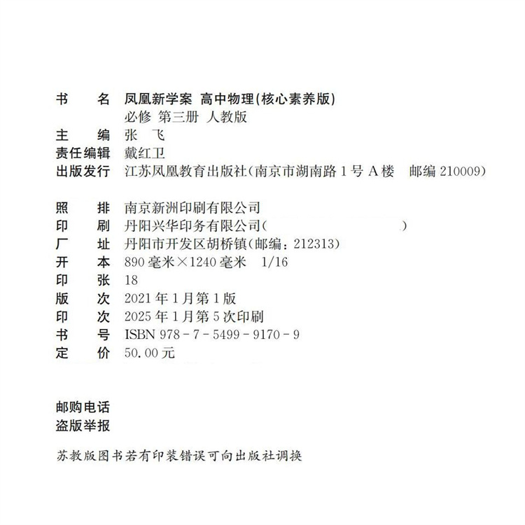 2025年 凤凰新学案 高中物理 人教版 必修第三册 中学教辅 核心素养版 高中教学参考资料 第3册 江苏凤凰教育出版社