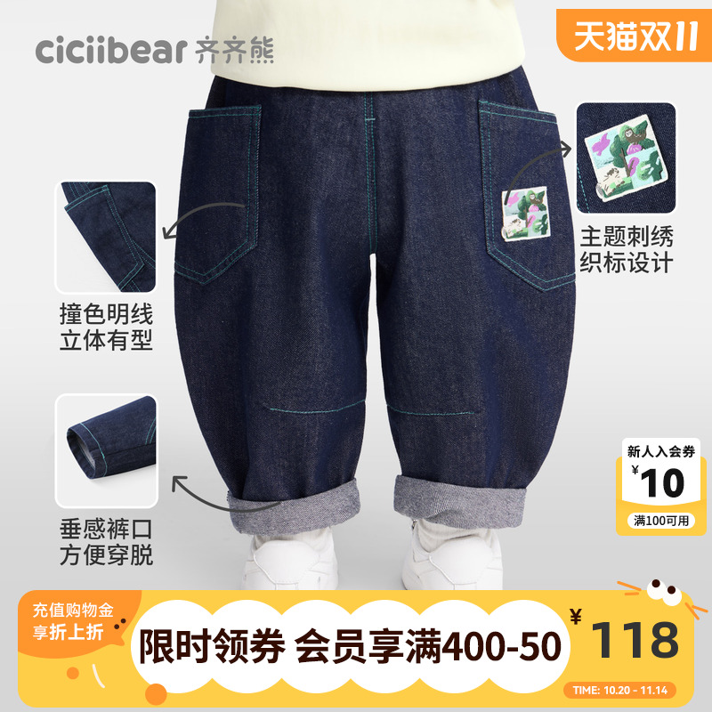 [防褪色]齐齐熊宝宝软牛仔裤春秋款男童裤子2025新款儿童长裤小童