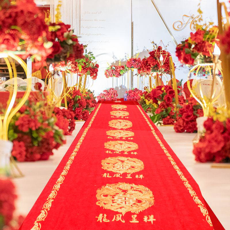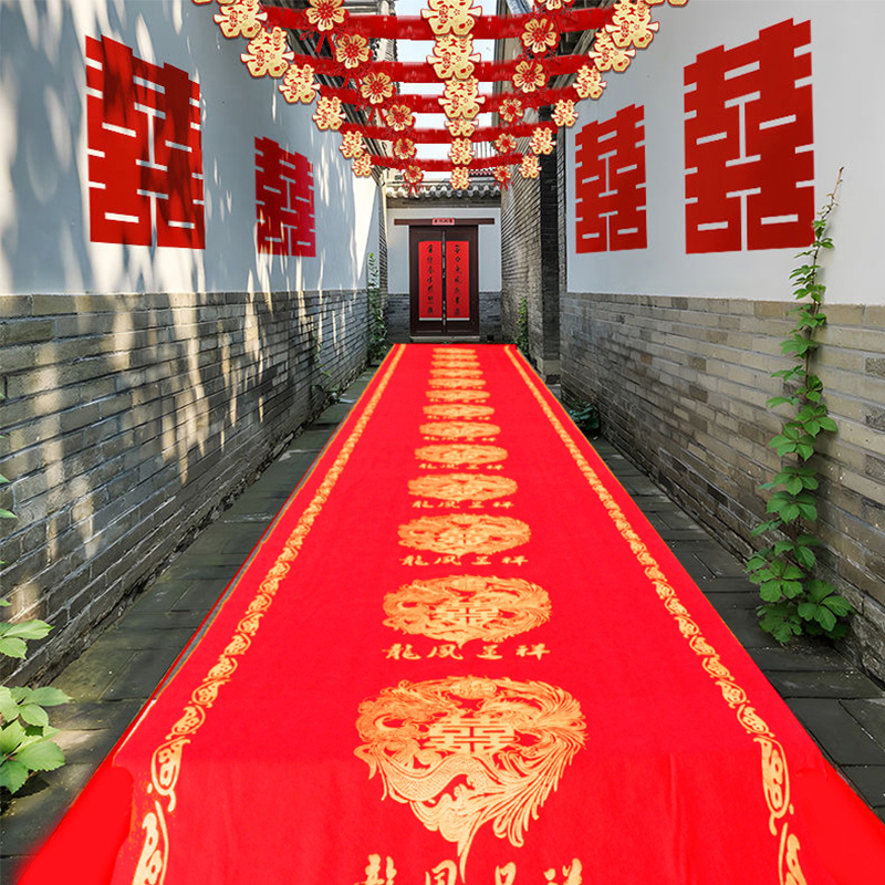 龙凤呈祥红地毯一次性结婚婚礼用婚礼布置婚庆用品无纺布喜字楼梯