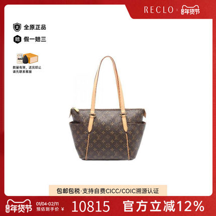 中古LV路易威登女包A级95新Totally PM涂层防水帆布托特包棕色