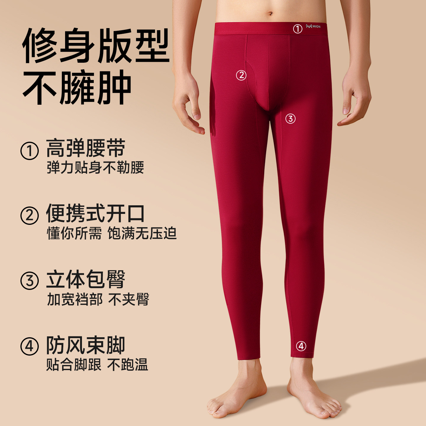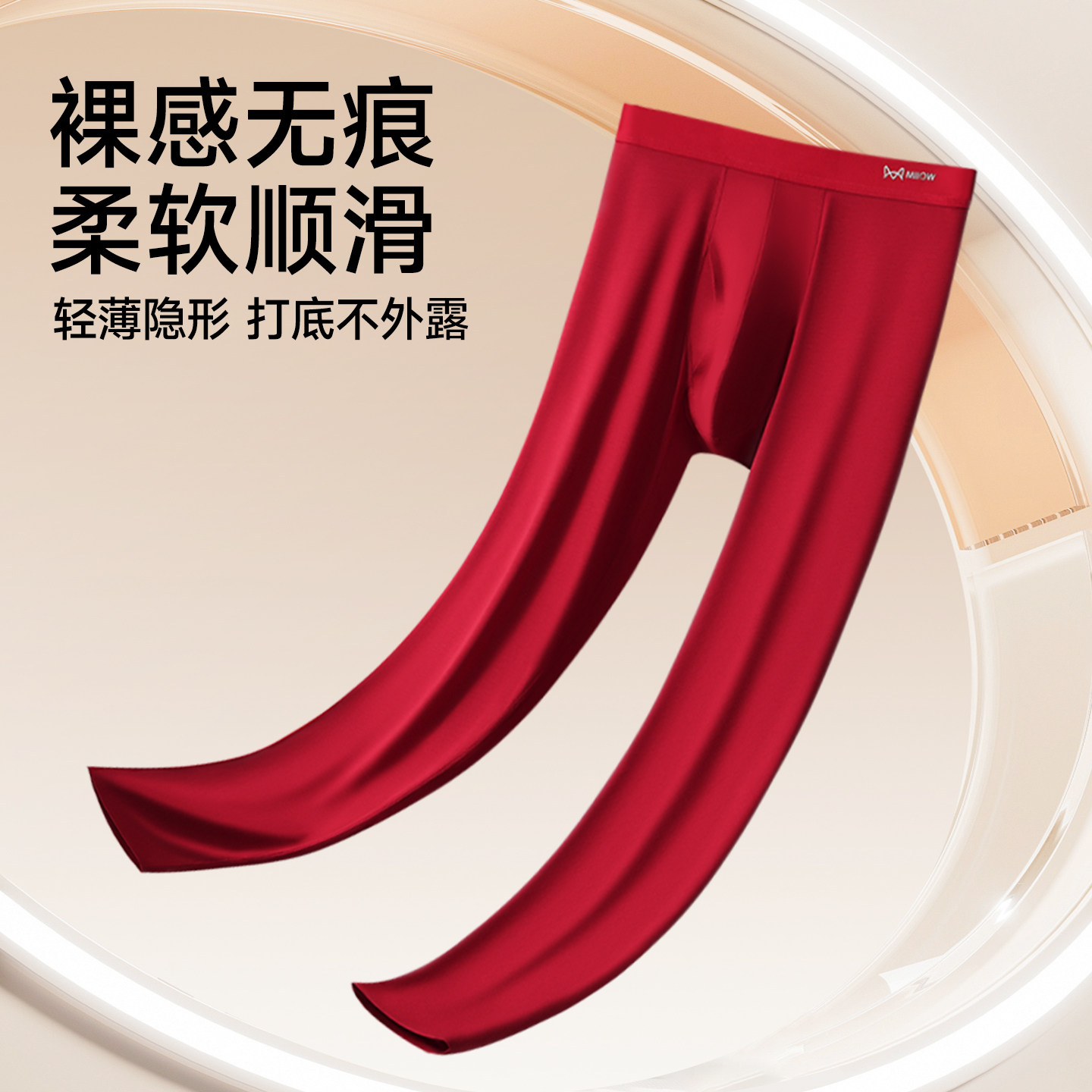 猫人莫代尔秋裤男款本命年无痕线裤衬裤内穿薄款酒红色男士保暖裤