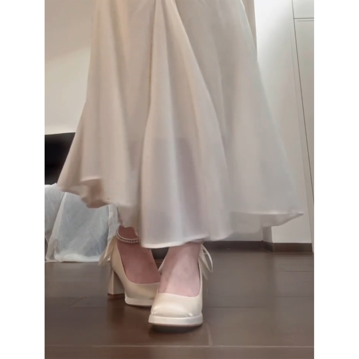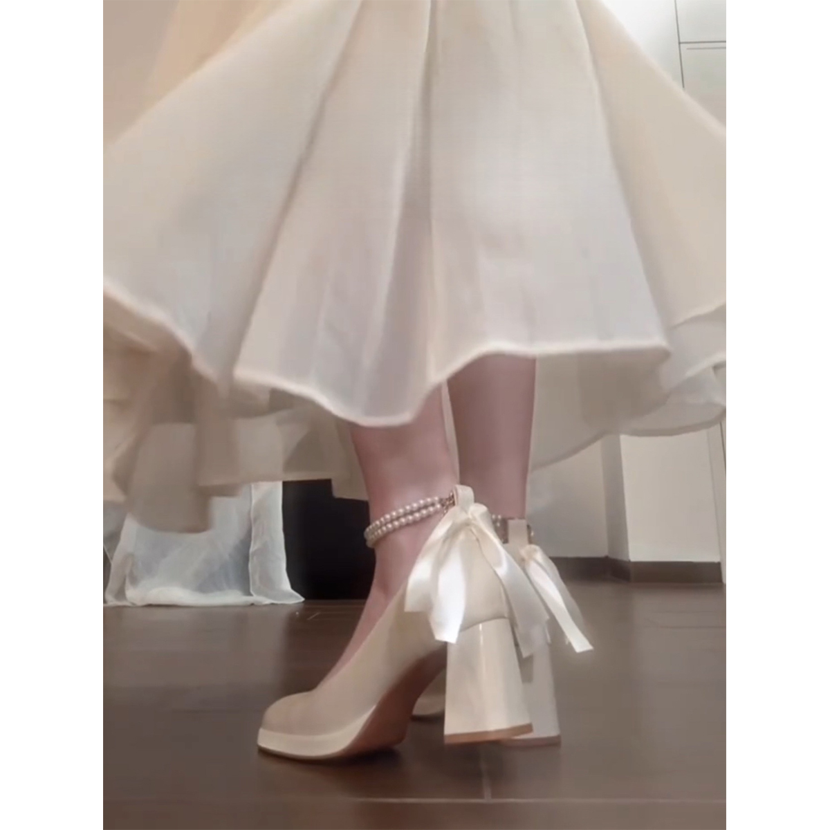 法式玛丽珍高跟鞋女2025新款配裙子单鞋婚鞋粗跟防水台婚纱新娘鞋