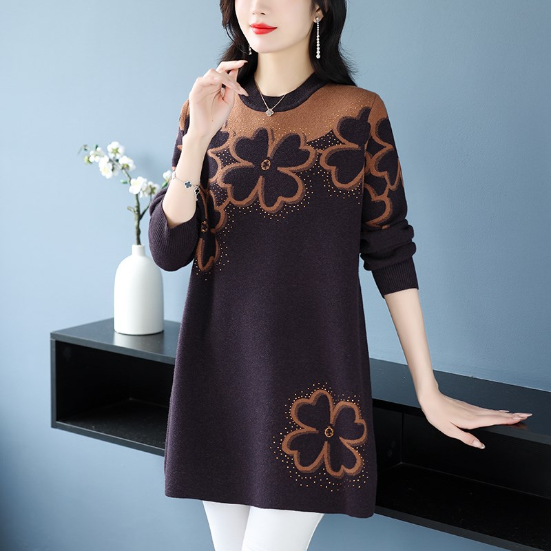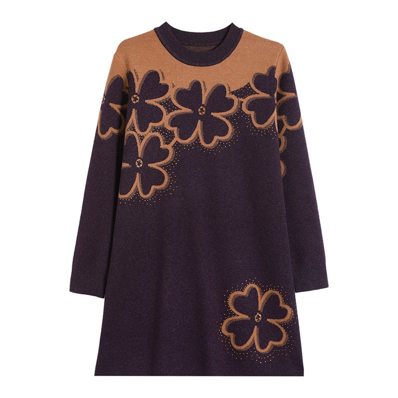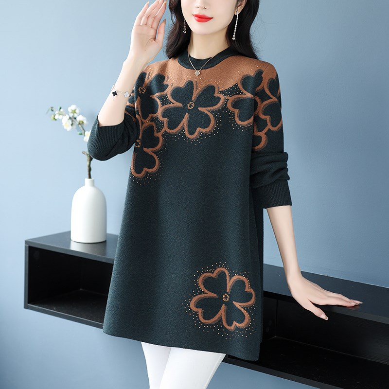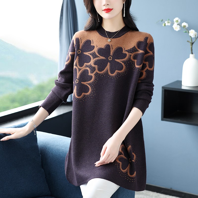 中年妈妈羊绒衫女秋冬装加肥加大码针织毛衣宽松中长款羊毛打底衫