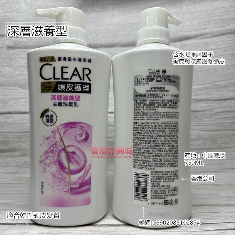 港版进口净CLEAR清扬洗发水女去屑止痒清爽控油洗发露750ML