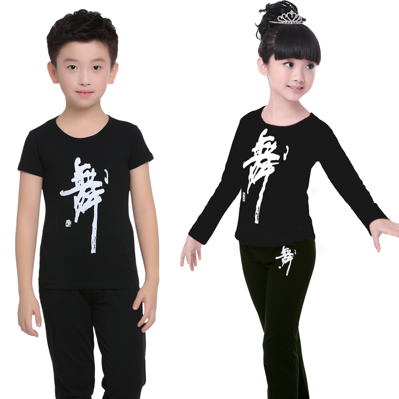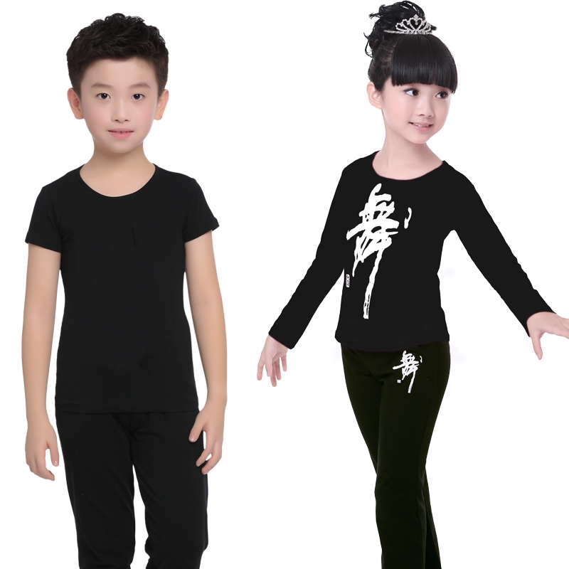 全棉男童舞蹈服纯黑不印字长袖短袖拉丁跳舞上衣长裤精品练功套装