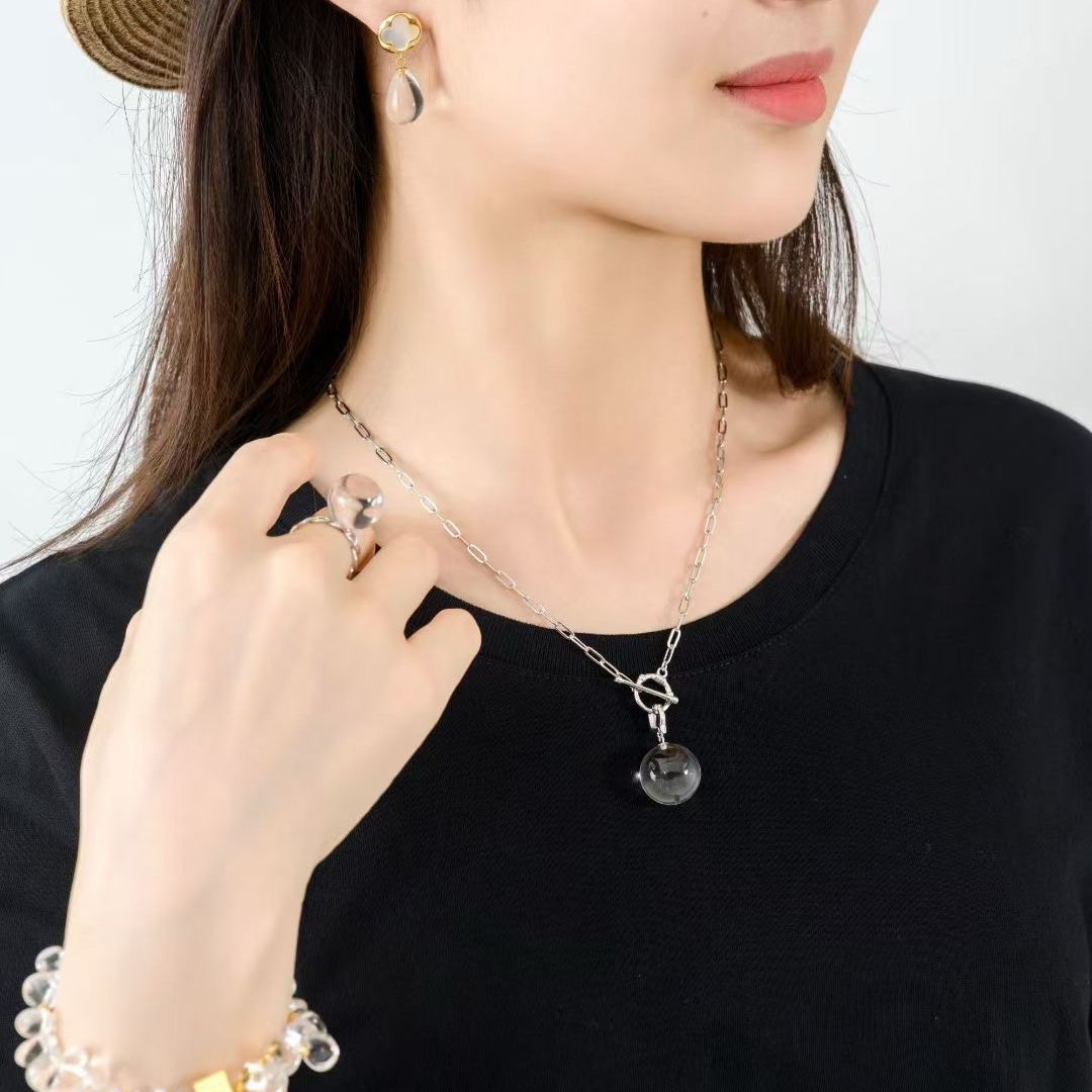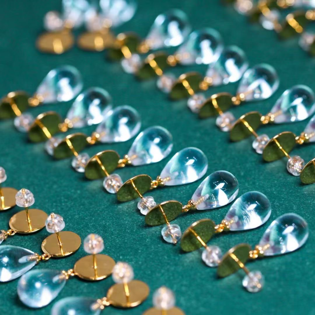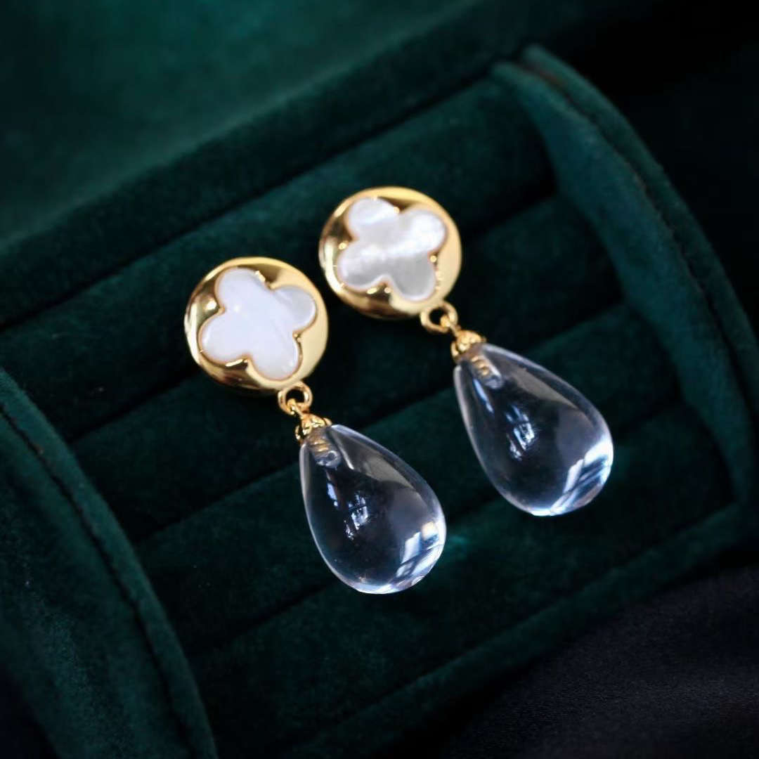 天然白水晶雕刻水滴耳钉银针耳环ins时尚高级感法式设计百搭耳饰