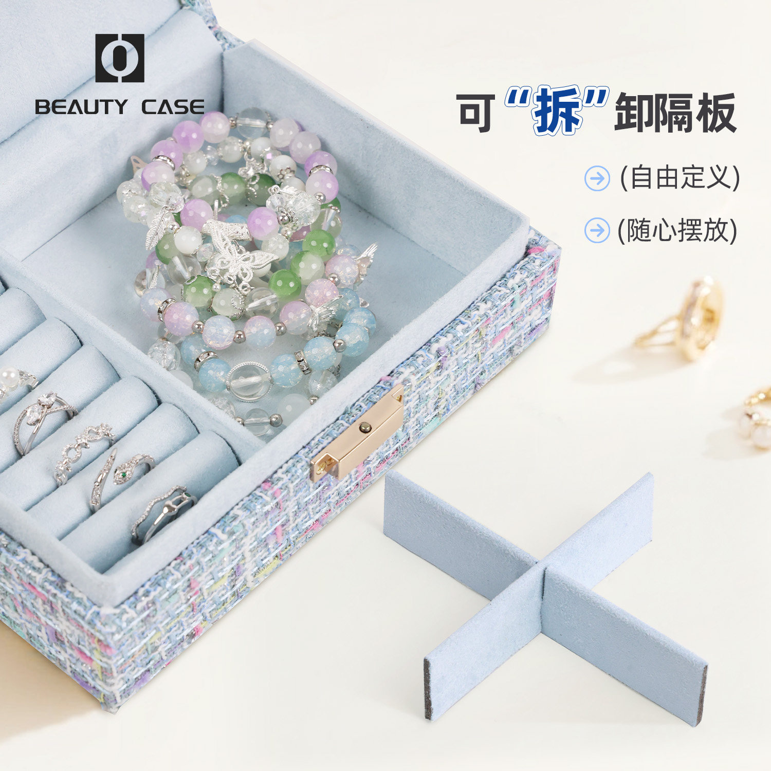 BEAUTYCASE小香风首饰盒黄金珠宝耳钉戒指饰品外出旅行便携收纳盒
