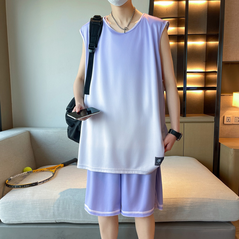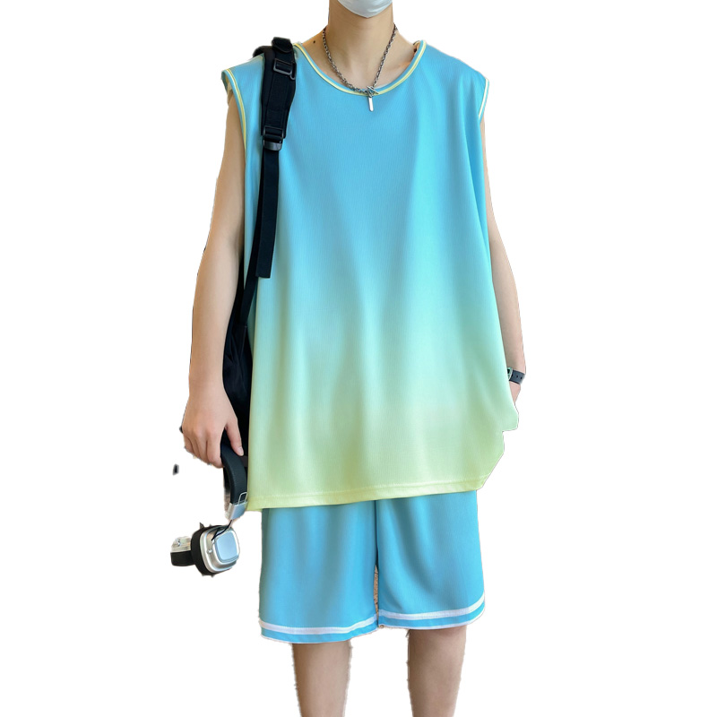 青少年夏季速干无袖t恤套装男孩12-15岁中学生14大童运动背心球服