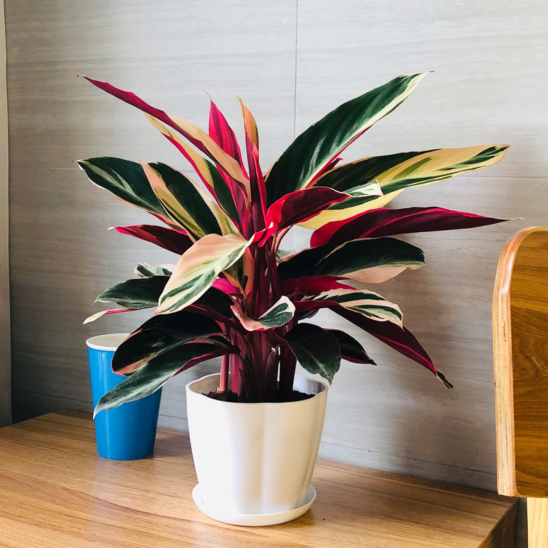 粉色彩叶七彩竹芋盆栽北欧风网红绿植室内办公桌绿植观叶花坛植物
