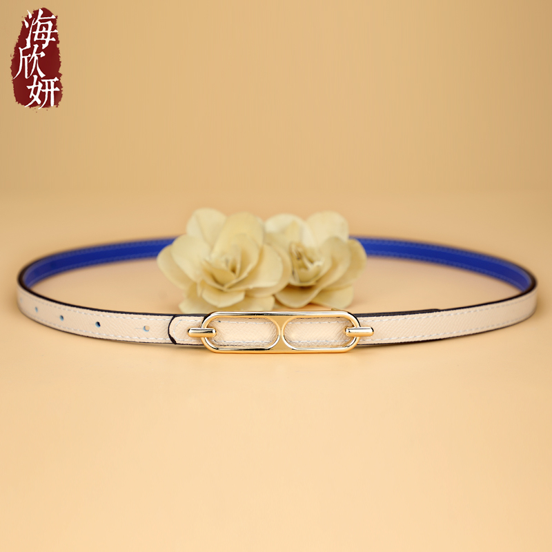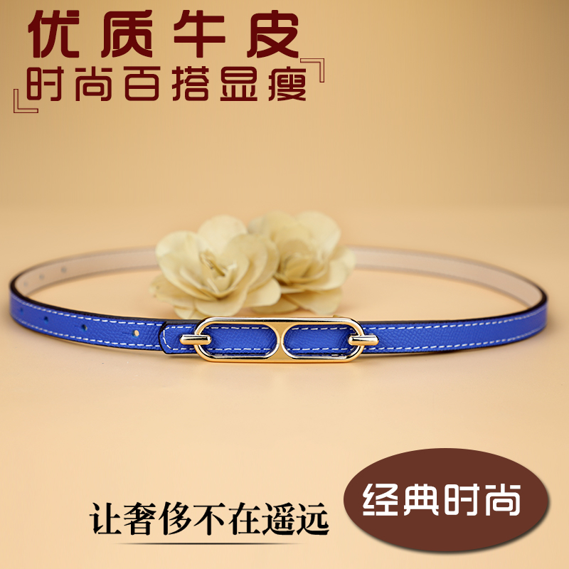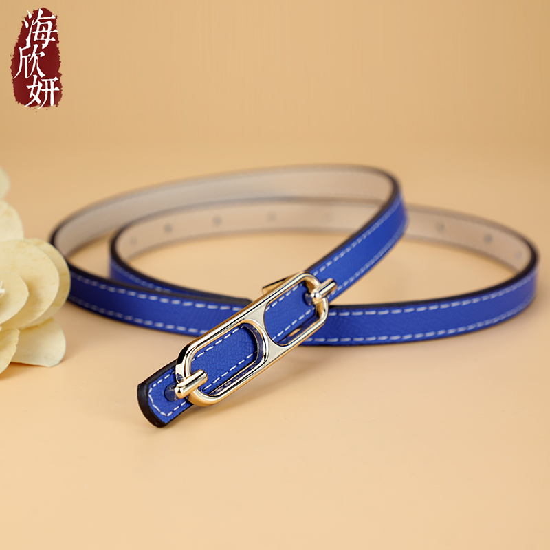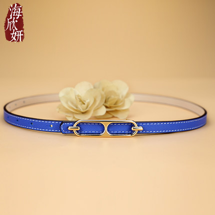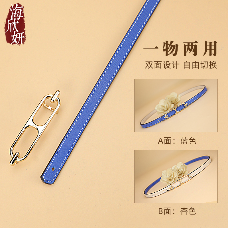 细腰带真皮牛皮蓝色小众设计感装饰皮带时尚配连衣裙衬衫2024新款