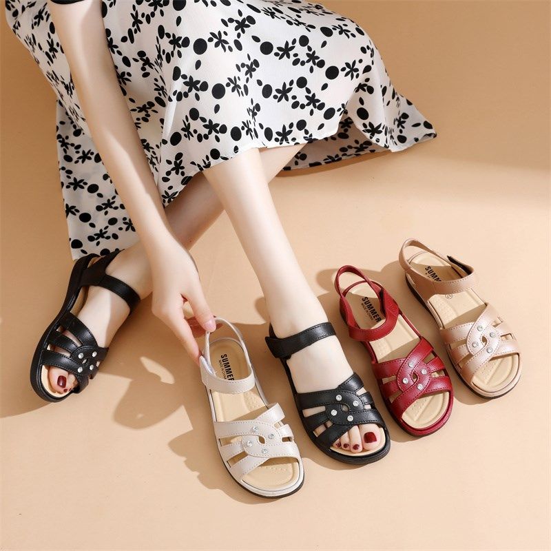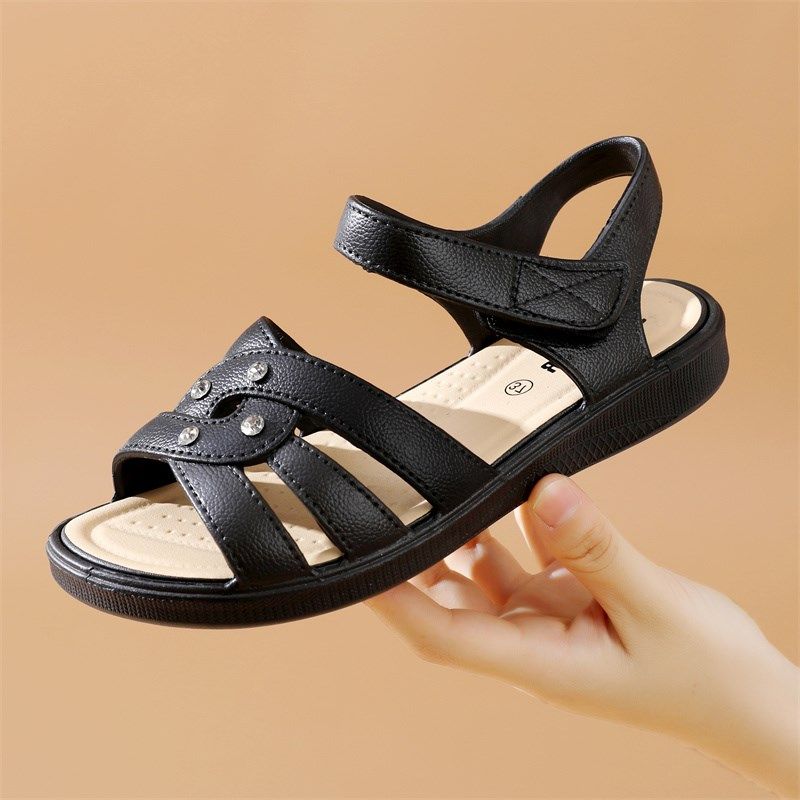 妈妈凉鞋休闲夏季中老年夏天款中年女鞋老人平底防滑软底奶奶舒适