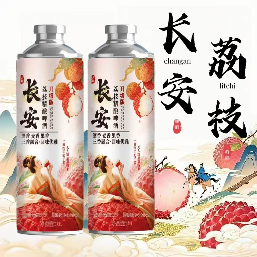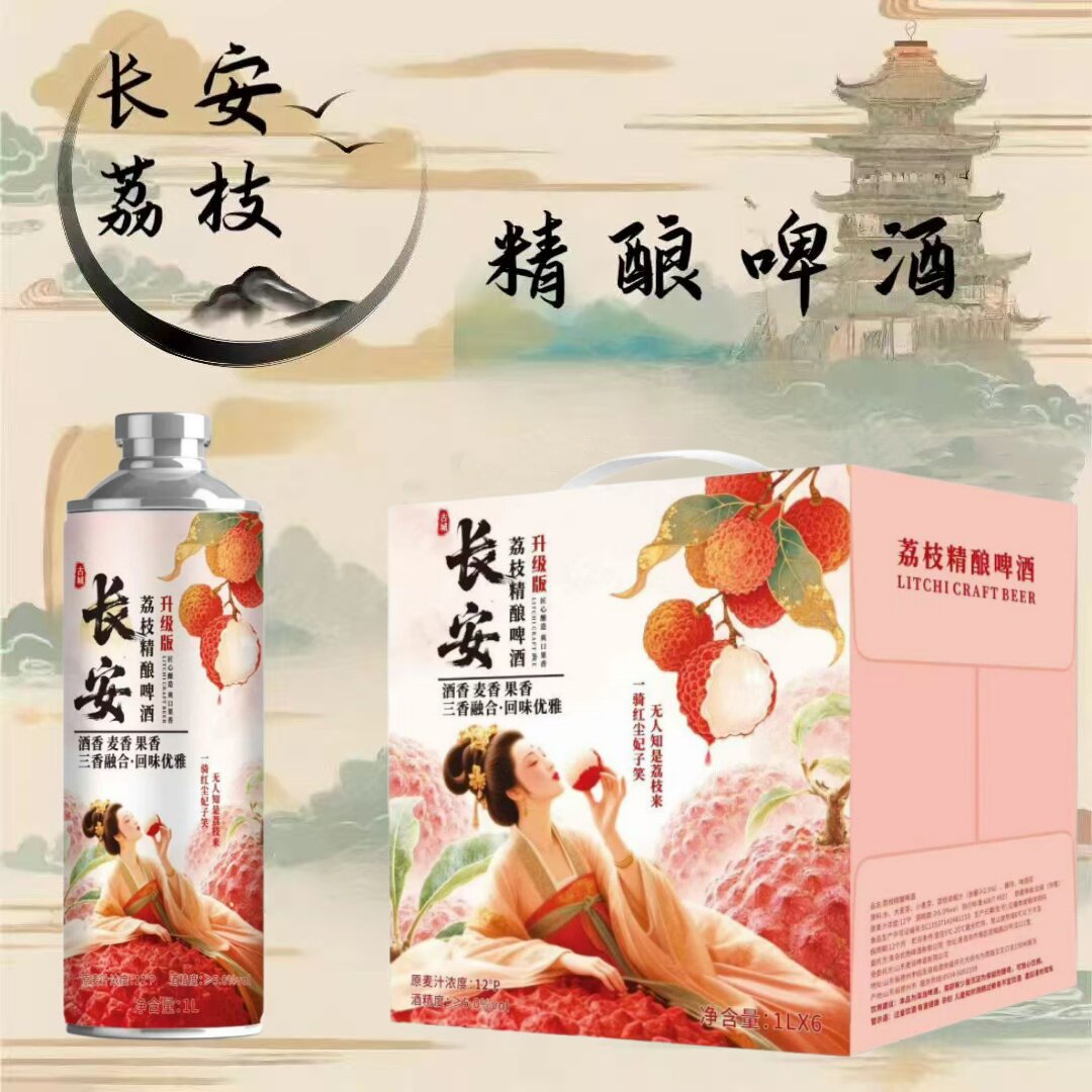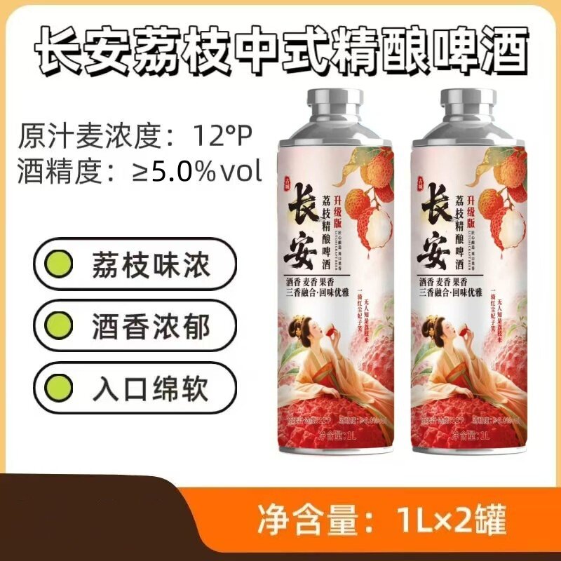 网红款12度长安荔枝中式精酿啤酒1L6罐整箱批发果啤商用