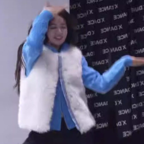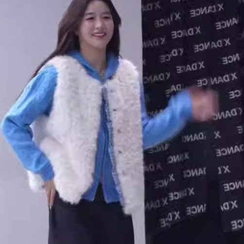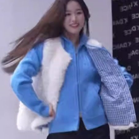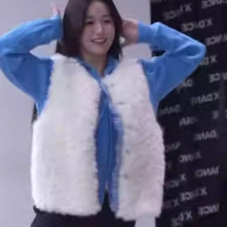 韩系氛围感甜妹格纹拼接毛茸茸马甲外套+克莱因蓝针织毛衣两件套