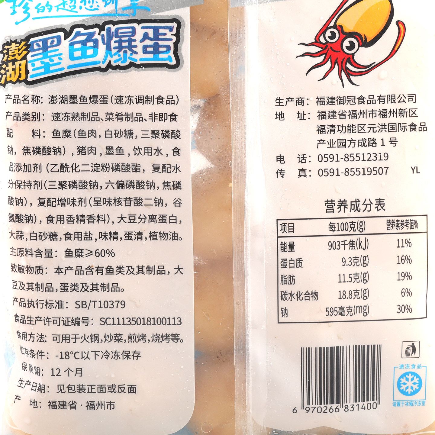 珍享澎湖墨鱼爆蛋500g 便利店商超同款实心墨鱼丸 火锅烧烤丸子