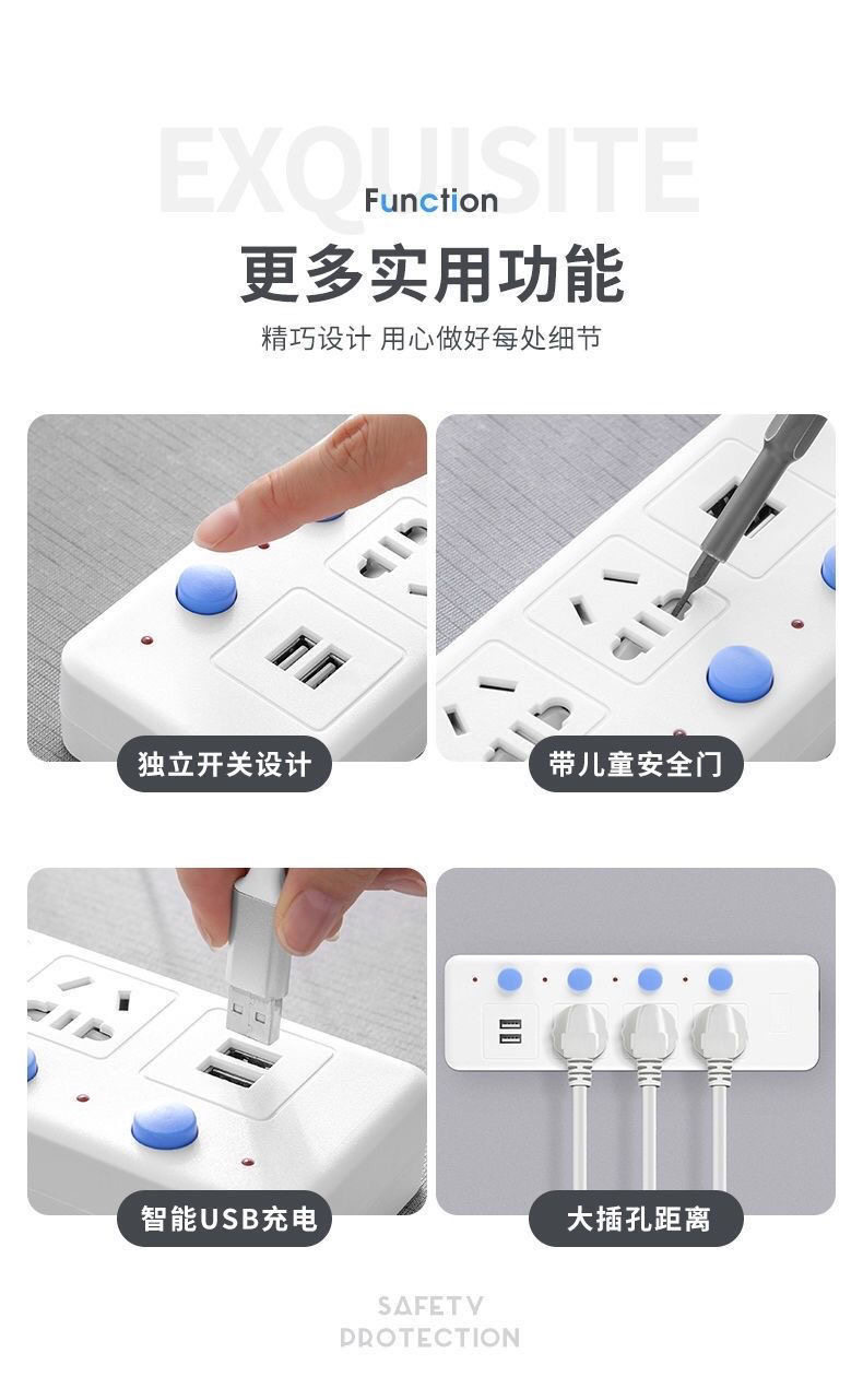 大功率防雷家用分控开关插排不带线USB多功能接线板插座面板多孔