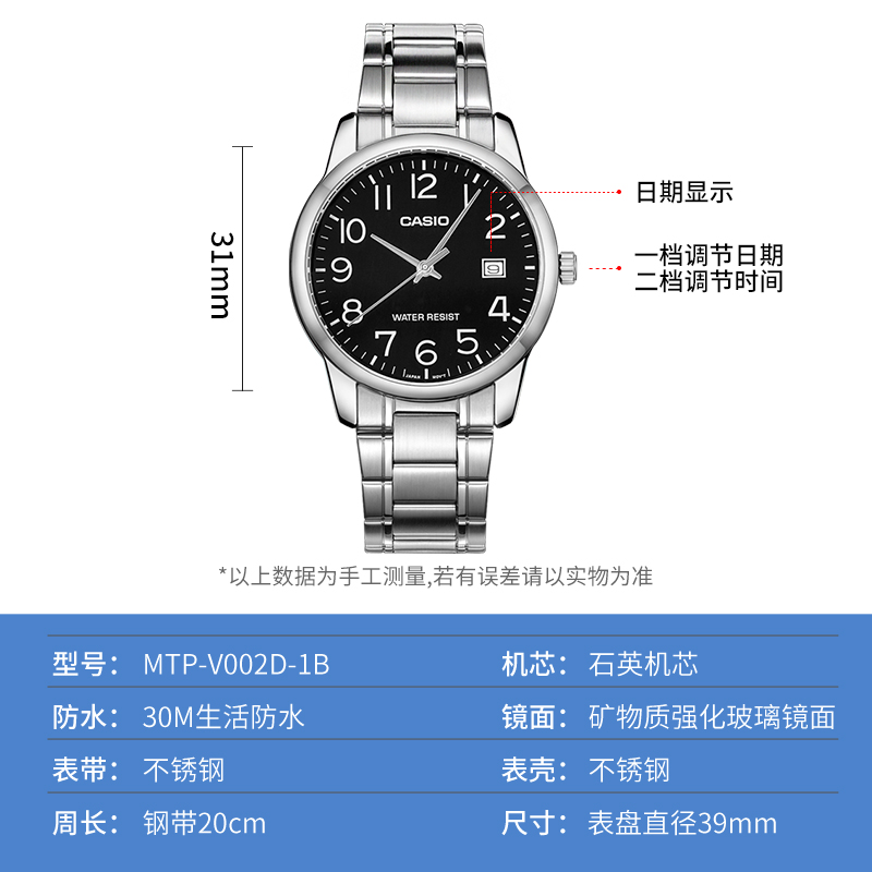 Casio卡西欧手表男时尚简约休闲商务指针石英男表MTP-V002