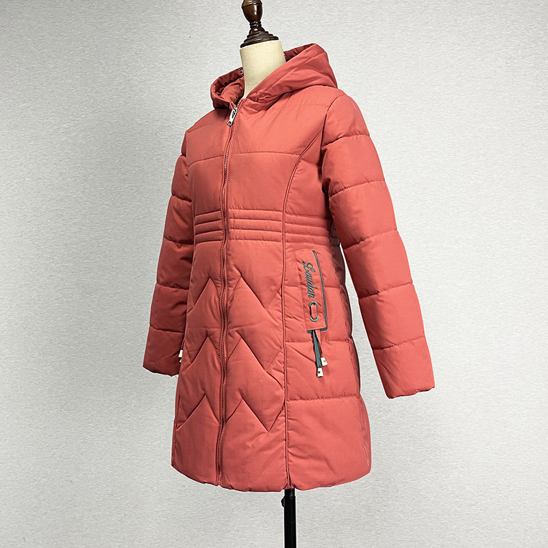 中长款欧美风宽松桔红色棉衣棉服