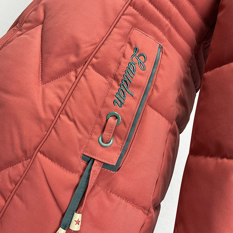 中长款桔红色连帽棉衣棉服女2024秋冬宽松加厚保暖刺绣拉链外套