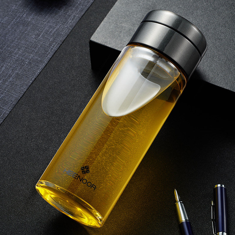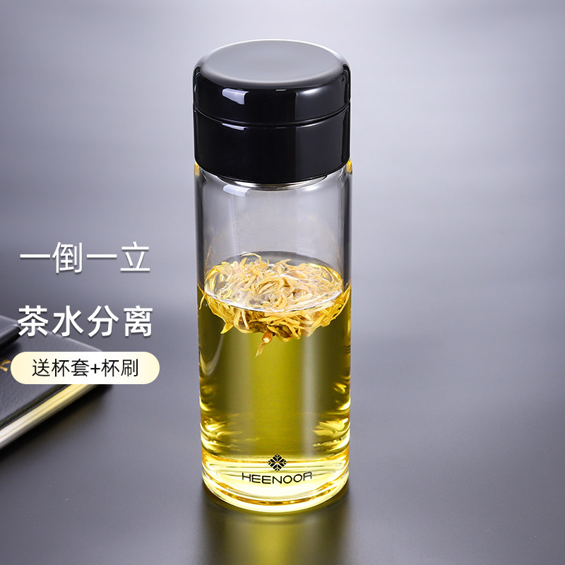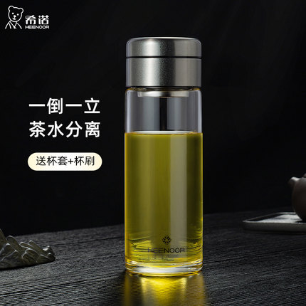 希诺玻璃杯 单层加厚男士大容量茶水分离泡茶杯 夏季耐高温喝水杯
