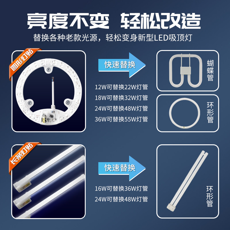 公牛led吸顶灯替换灯芯灯盘磁吸灯珠灯条卧室替换节能灯贴灯板片