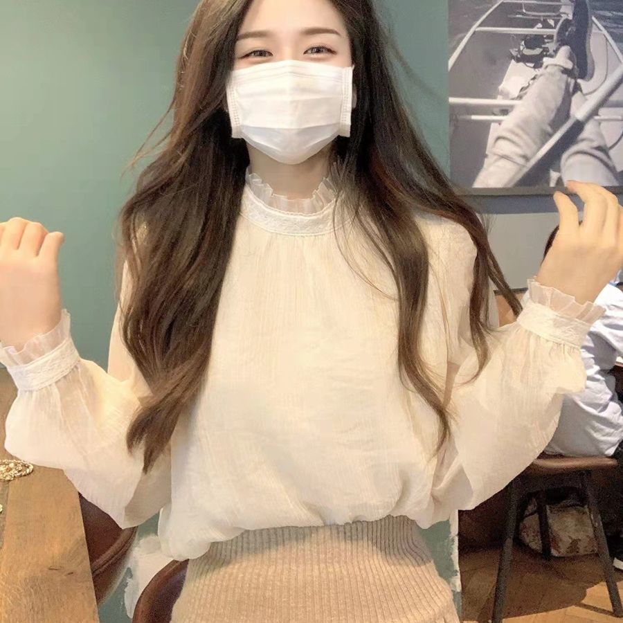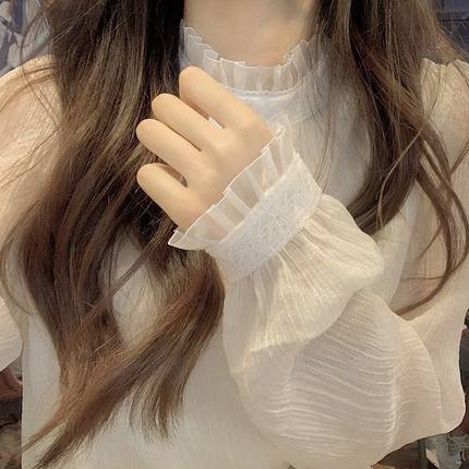 仙气网纱上衣减龄别致洋气雪纺小衫高级感蕾丝打底衫女内搭衬衫秋