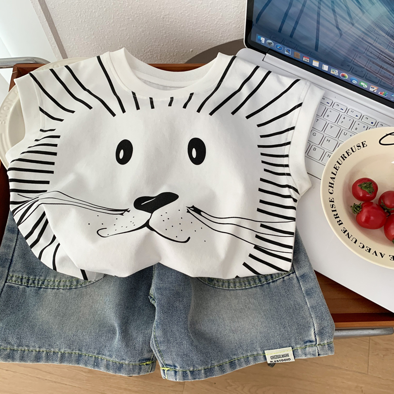 男童夏季无袖T恤2025新款儿童卡通狮子背心上衣中小童纯棉打底衫T