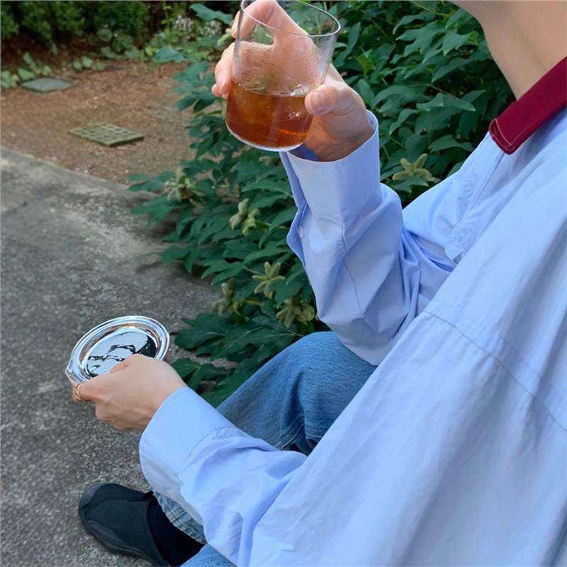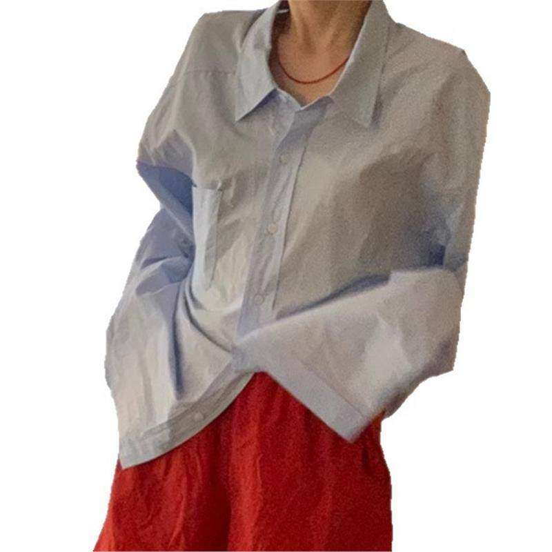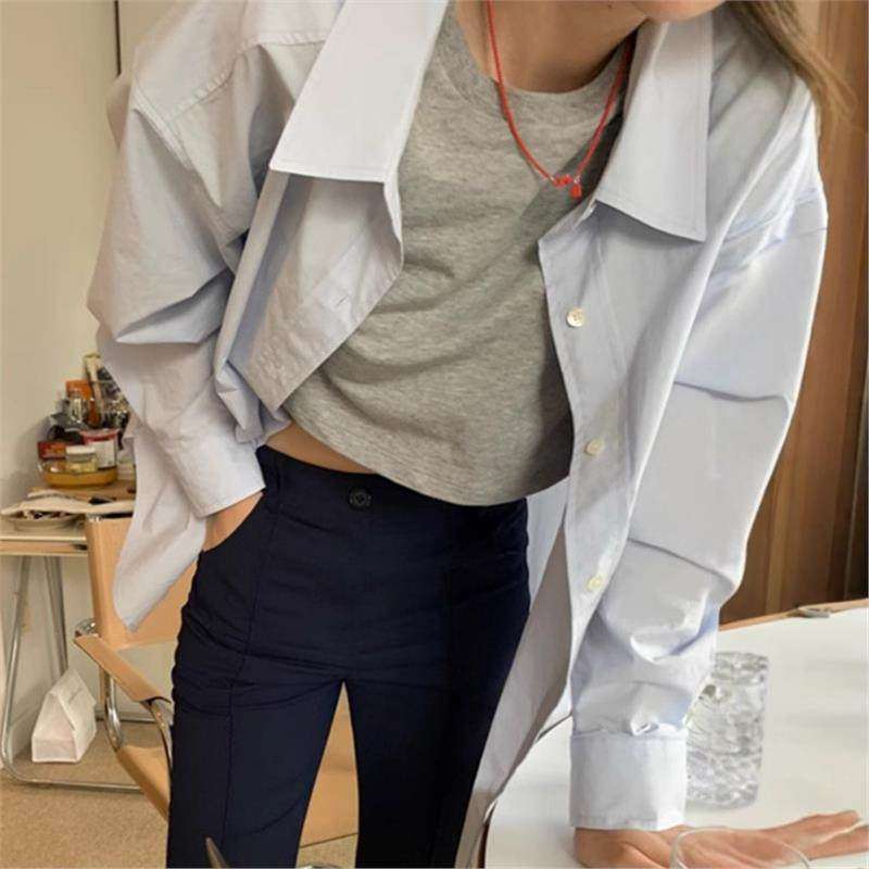 现货 宽松蓝色衬衫女2025春韩系ins设计感小众宽松休闲衬衣 mo*e