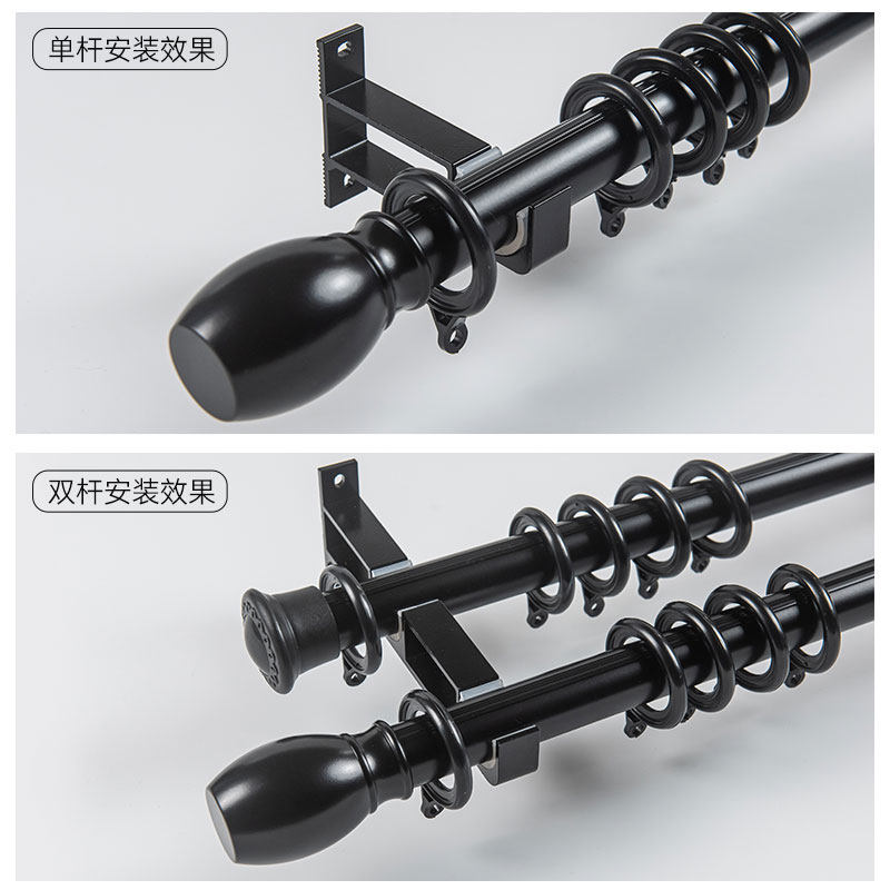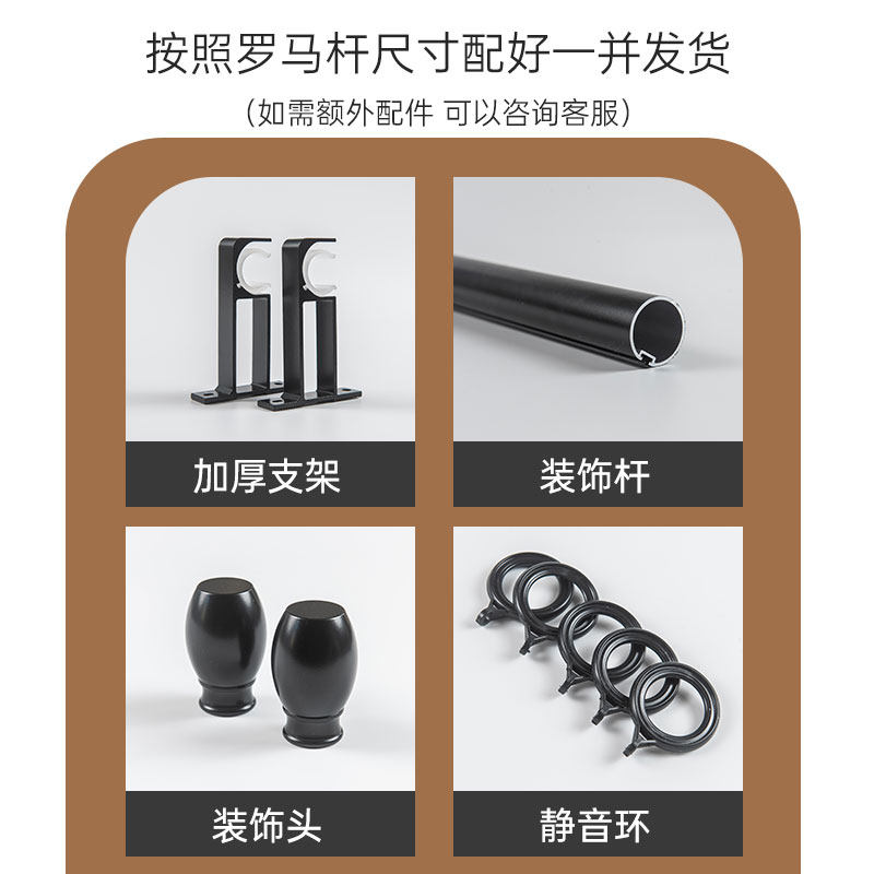 轨道窗帘罗马杆支架单双层托固定一整套装饰头配件挂钩打孔铝合金