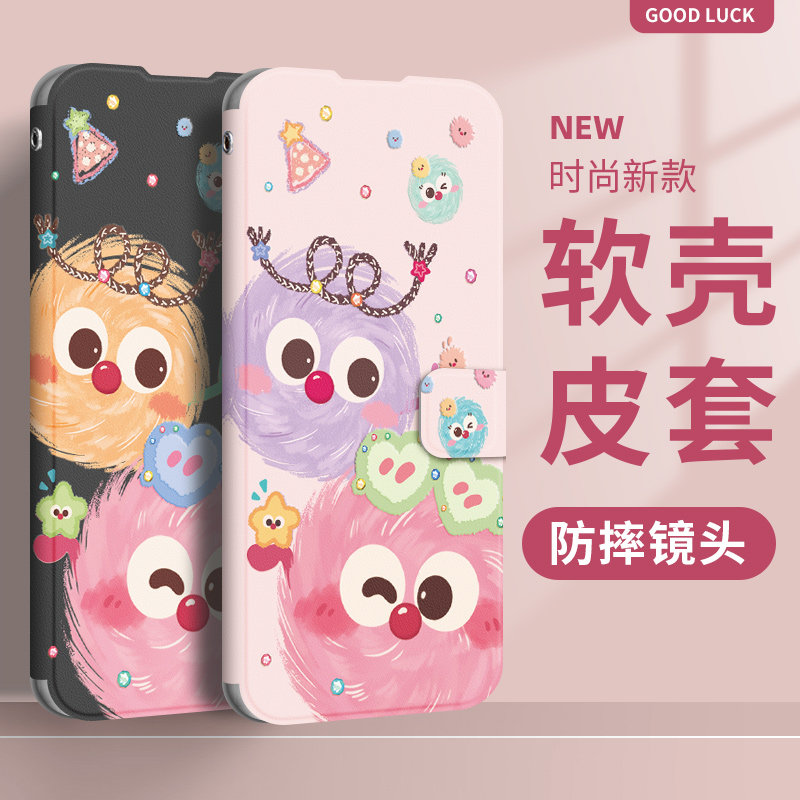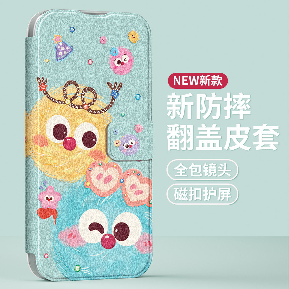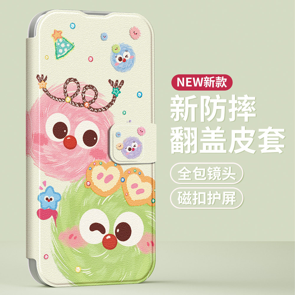 适用苹果17promax手机壳翻盖iphone16女款15/13/12/11保护壳新款8plus全包7p防摔6splus皮套xr软壳可爱小媒球
