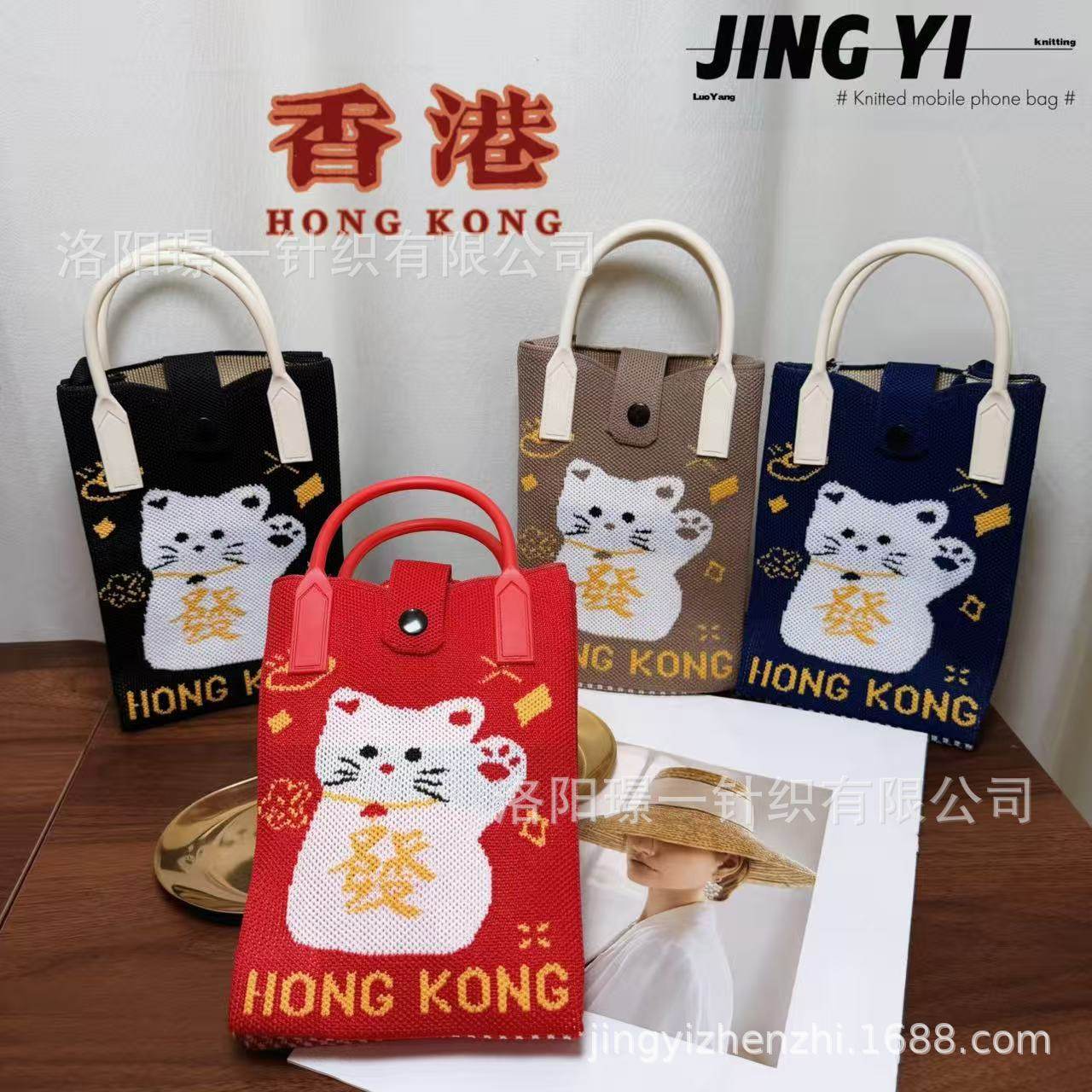 香港HK卡通针织包手机包百搭小巧便携通勤斜挎小方包女包迷你