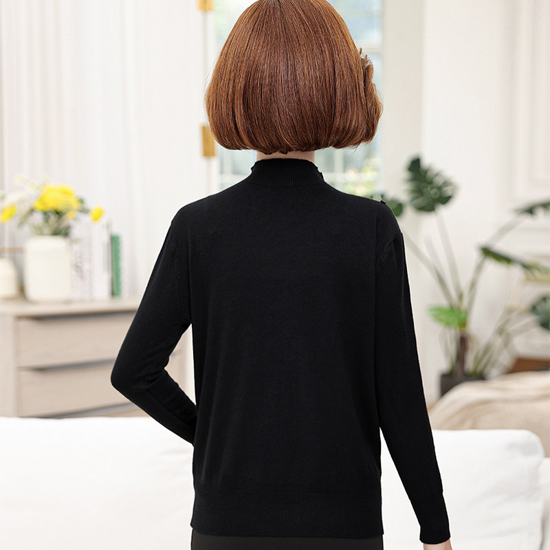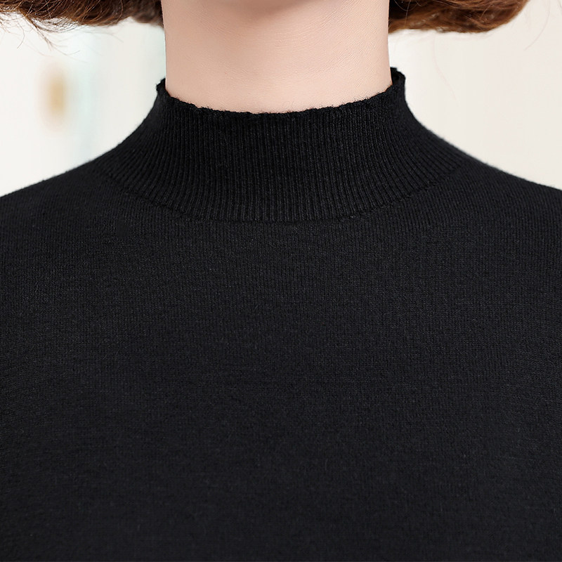 妈妈秋装大码长袖针织衫半高领上衣中老年人女装春秋打底衫修身