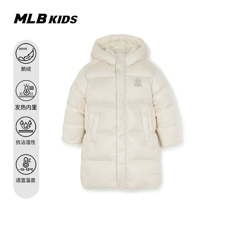 MLB儿童官方男女童复古LOGO防水长款连帽鹅绒羽绒服25秋冬新款
