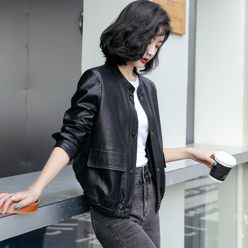 海宁真皮皮衣女短款羊皮圆领外套