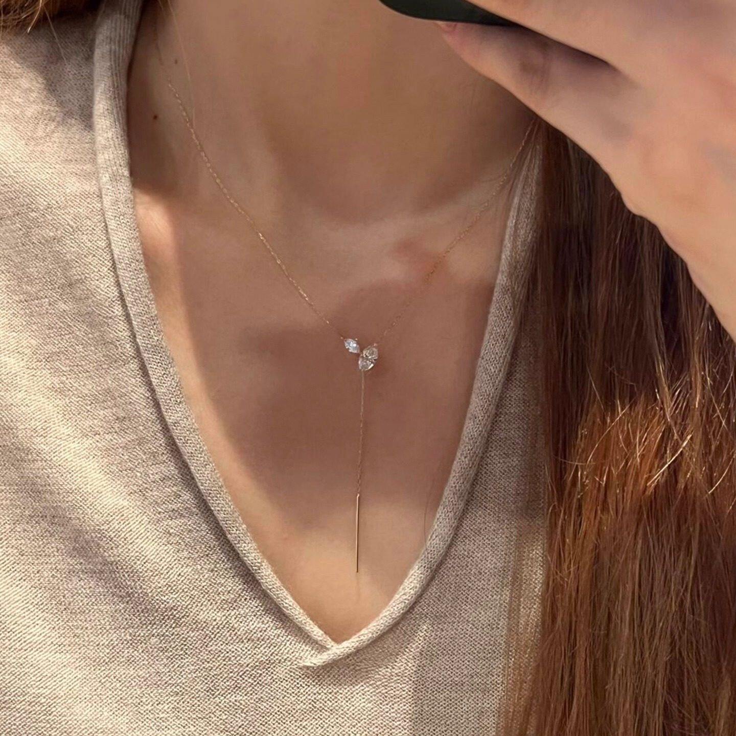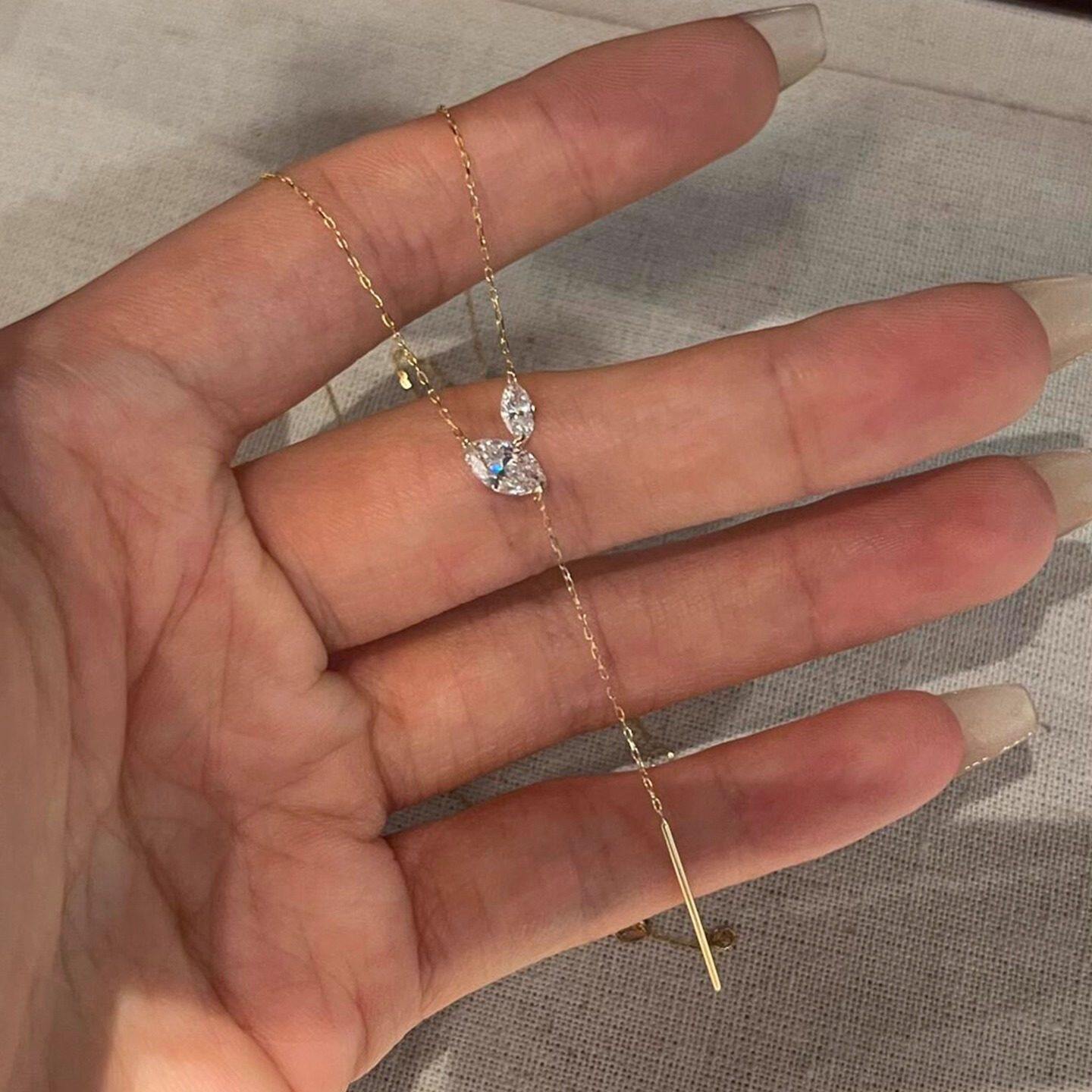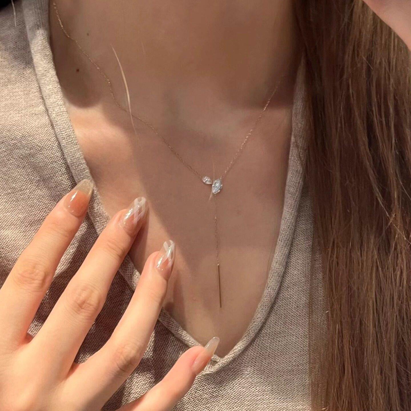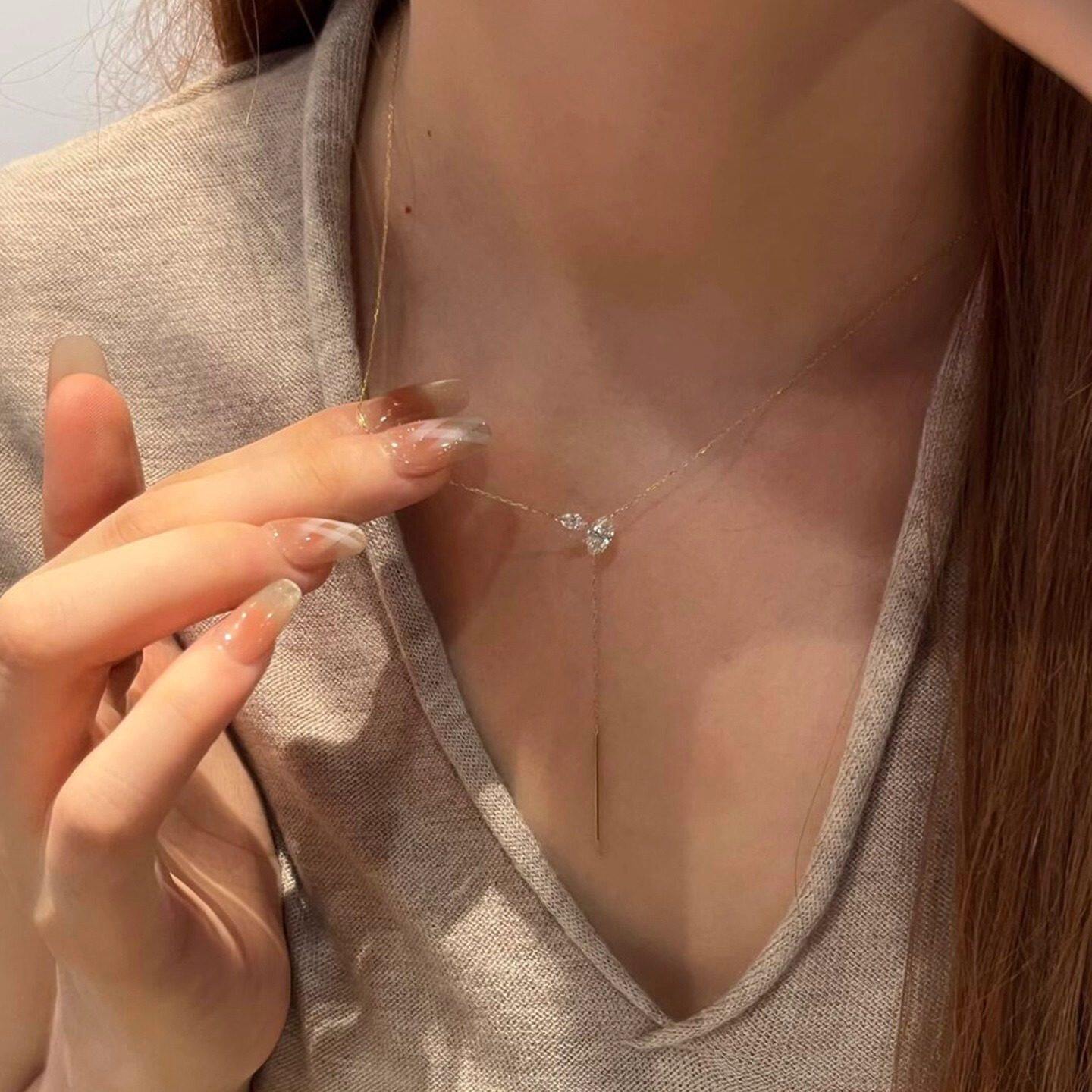 日系设计极细款水滴流苏项链女