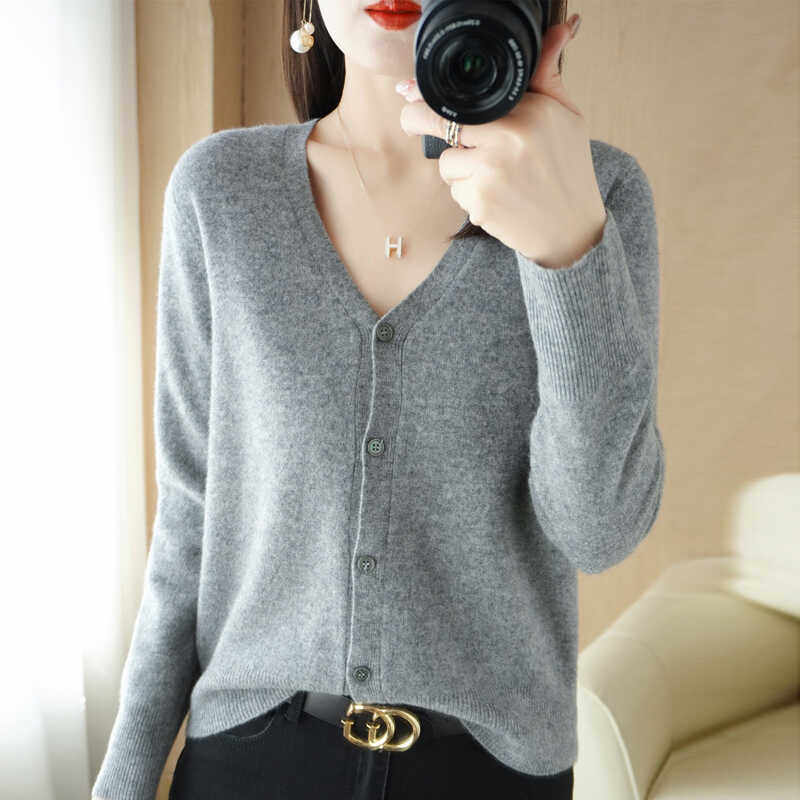 2025年新款100%纯羊毛开衫女宽松大码针织羊绒毛衣外套外搭上衣