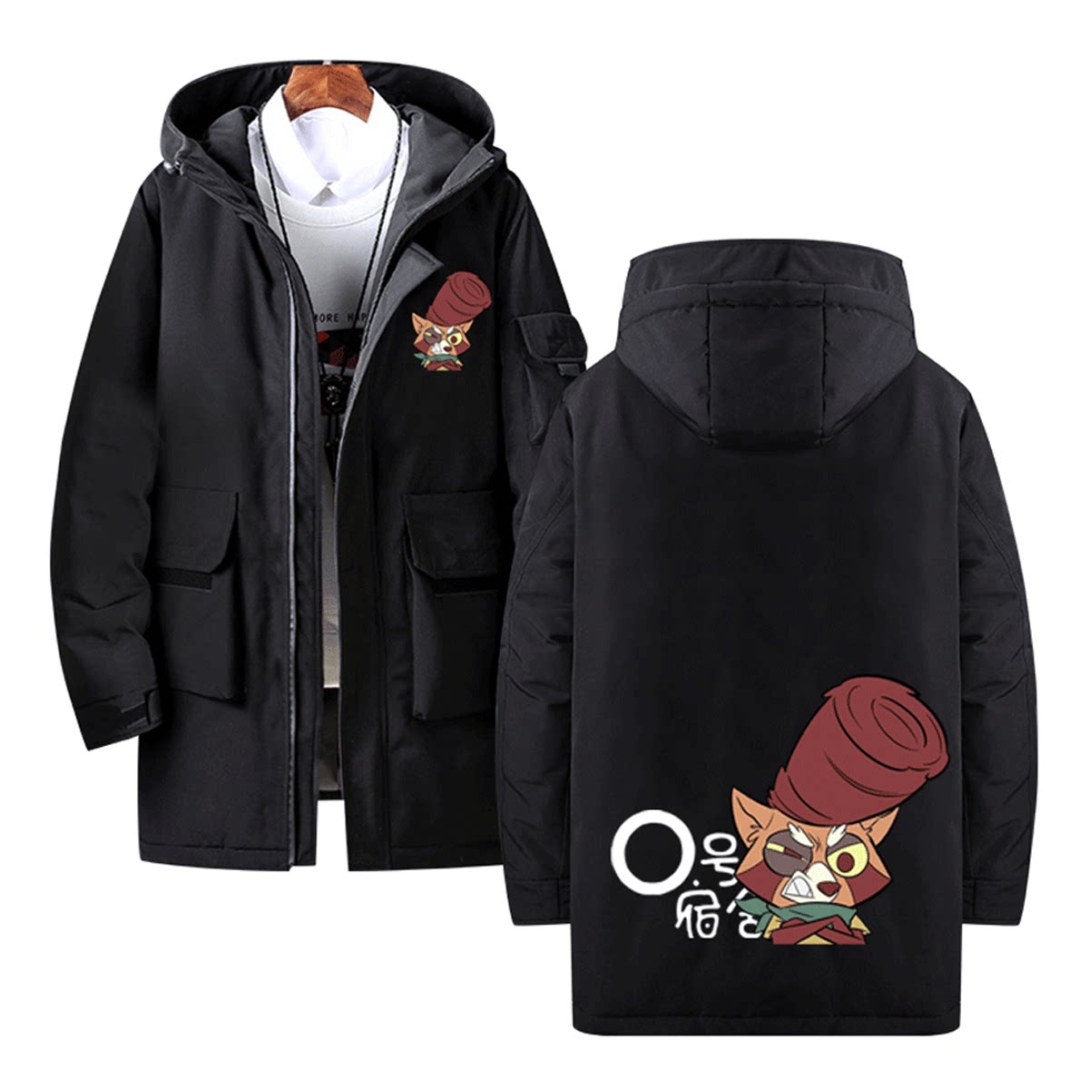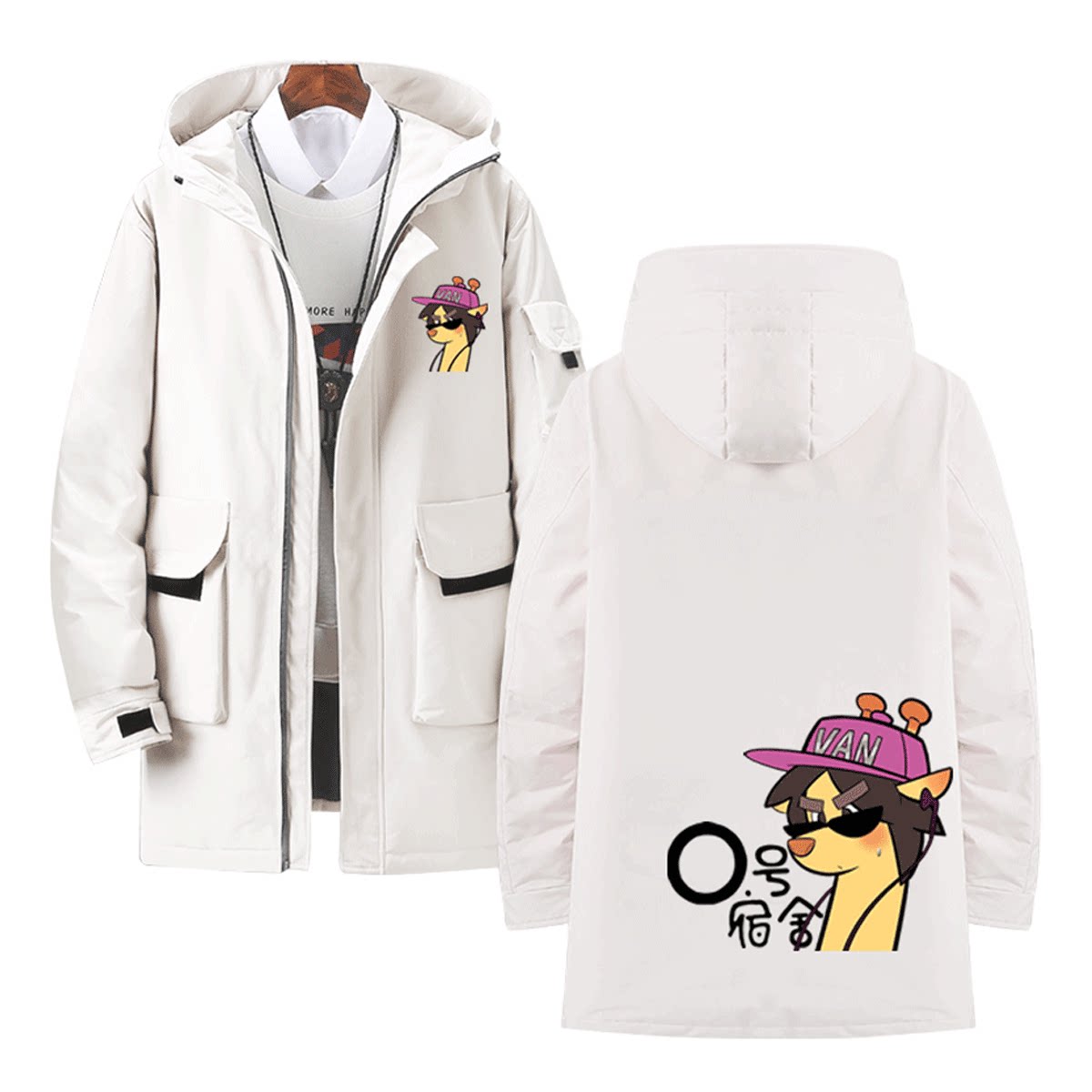 0号宿舍Q版动漫周边联名男女情侣可定制中长款外套连帽青年羽绒服