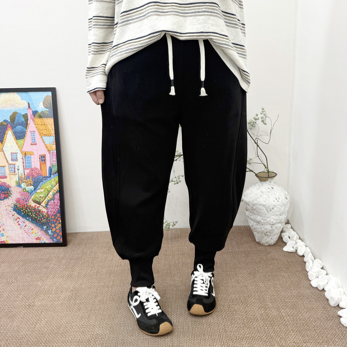 冬大码200斤胖mm宽松显瘦防风保暖加厚束脚卫裤女休闲运动裤长裤