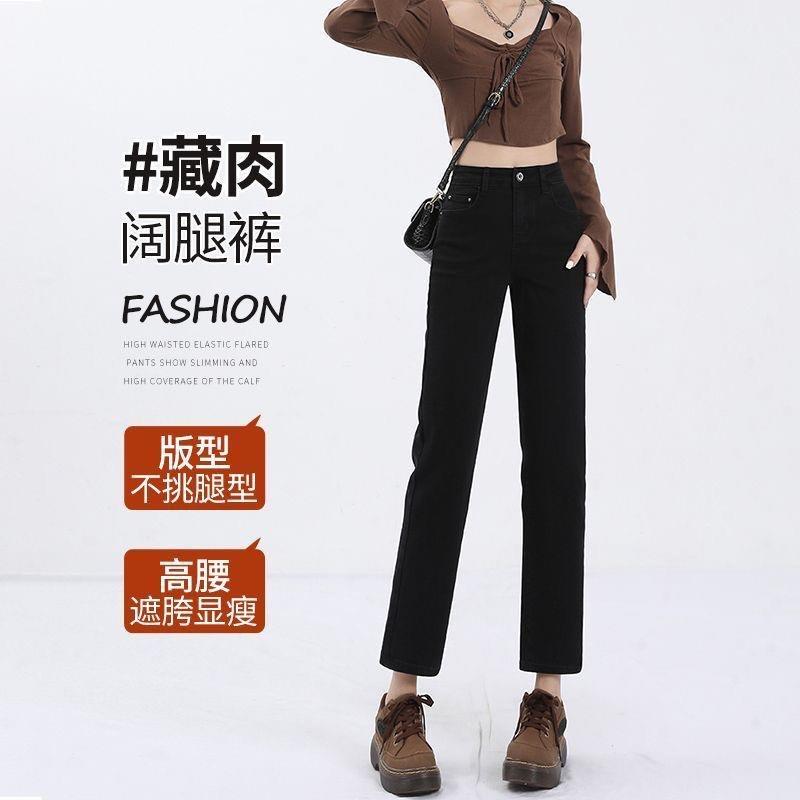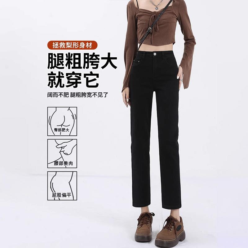 黑色烟管直筒牛仔裤女2025春秋夏季薄款小个子高腰法棍七八九分裤