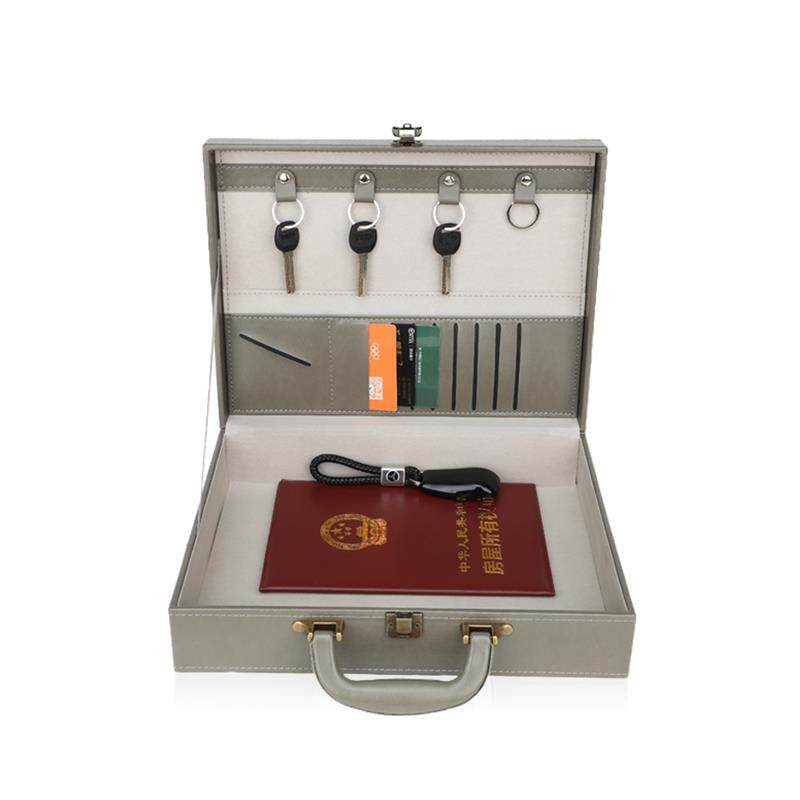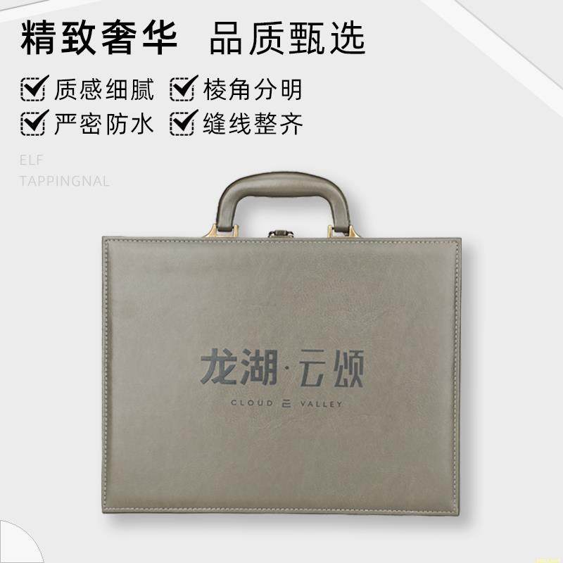 杭州地产龙湖深灰色PU皮革楼盘交付工具箱业主收楼礼品交房盒定制