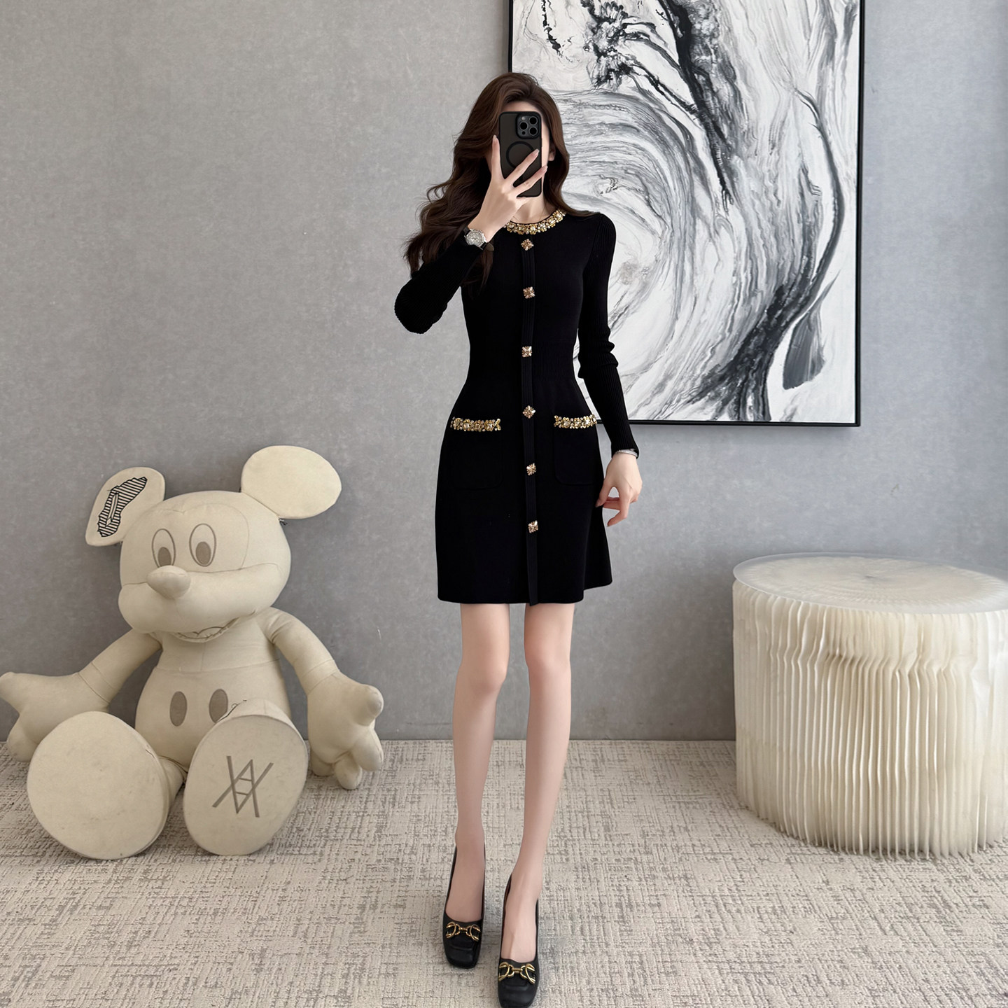 小香风时尚针织连衣裙女秋冬季新款高级感气质名媛收腰显瘦A字裙