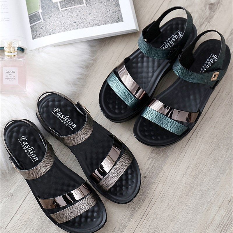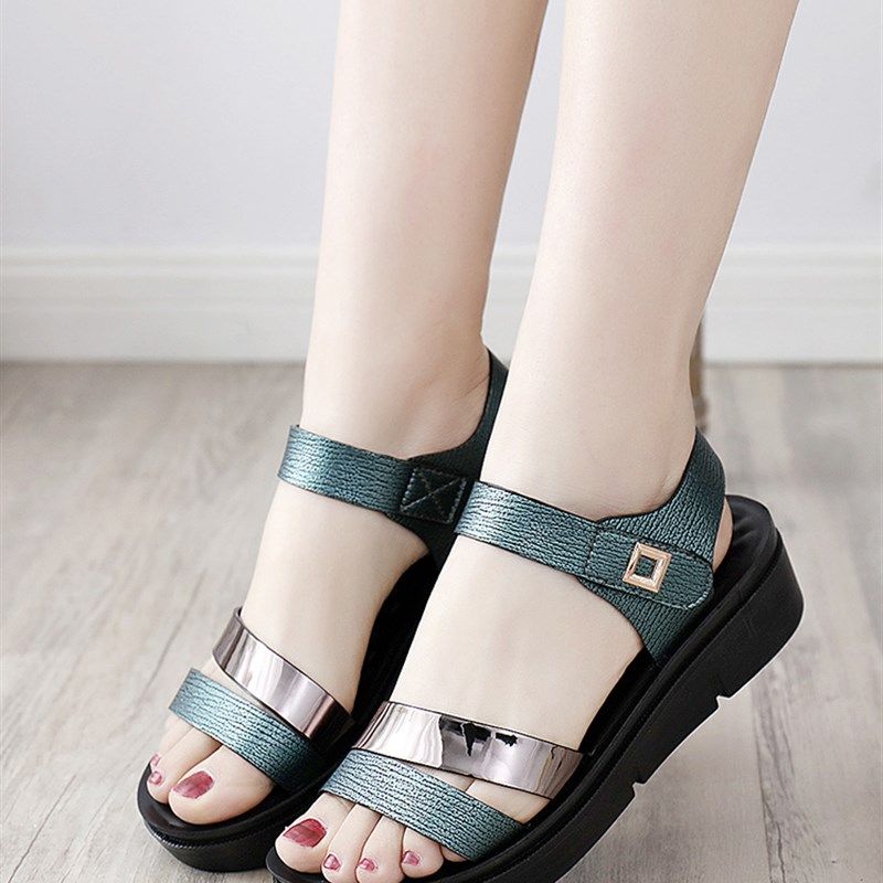 妈妈鞋凉鞋子高档新款女士夏季中年坡跟软底中老年人女鞋中跟平底