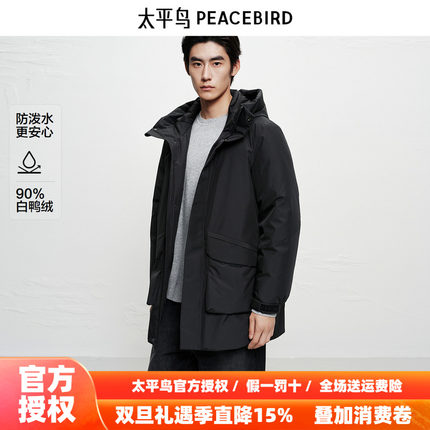 【防泼水】太平鸟男装 防寒派克服25年冬季新款中长款连帽羽绒服~