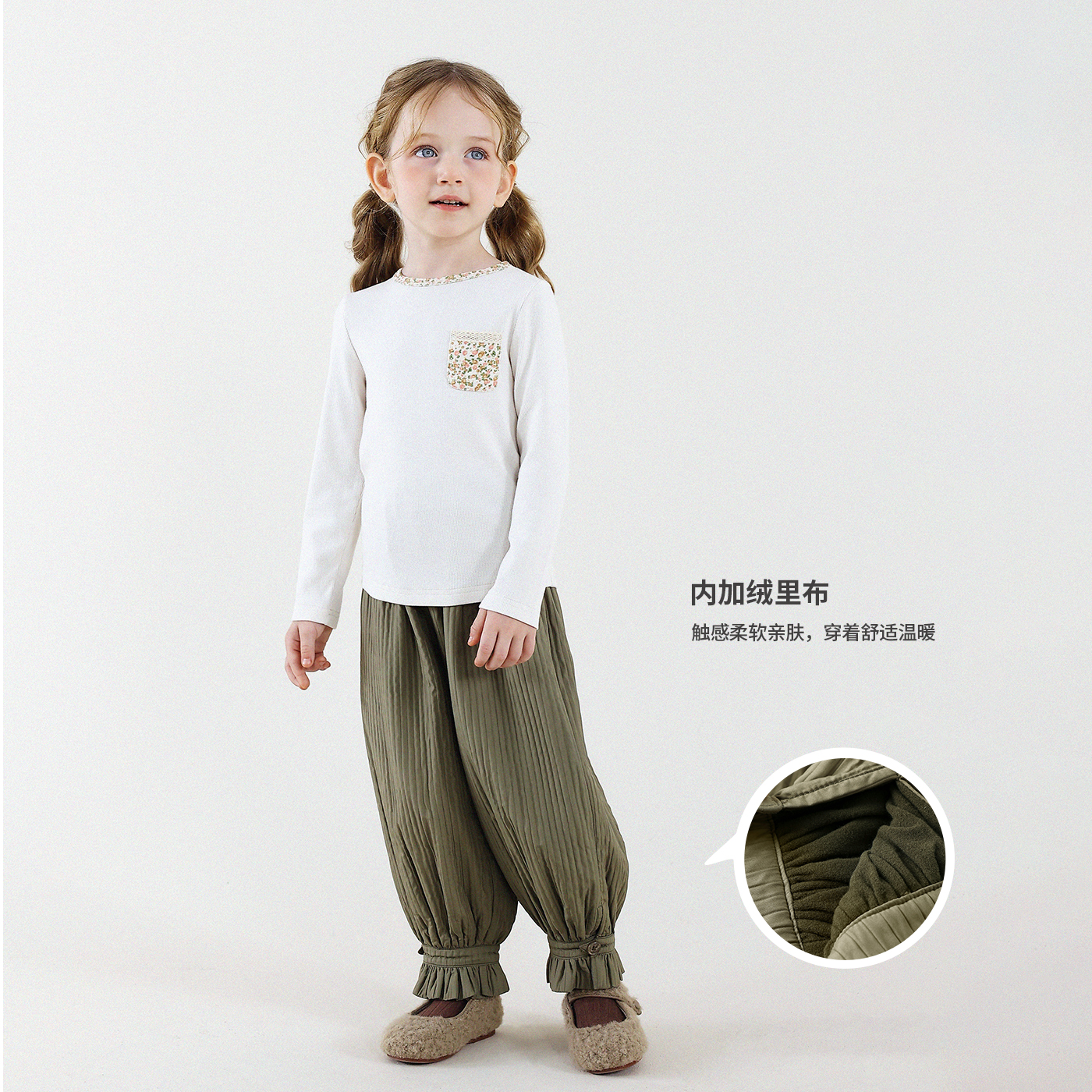 允儿妈女童冬季新款加绒花边休闲裤宝宝秋冬洋气束脚裤儿童裤子潮