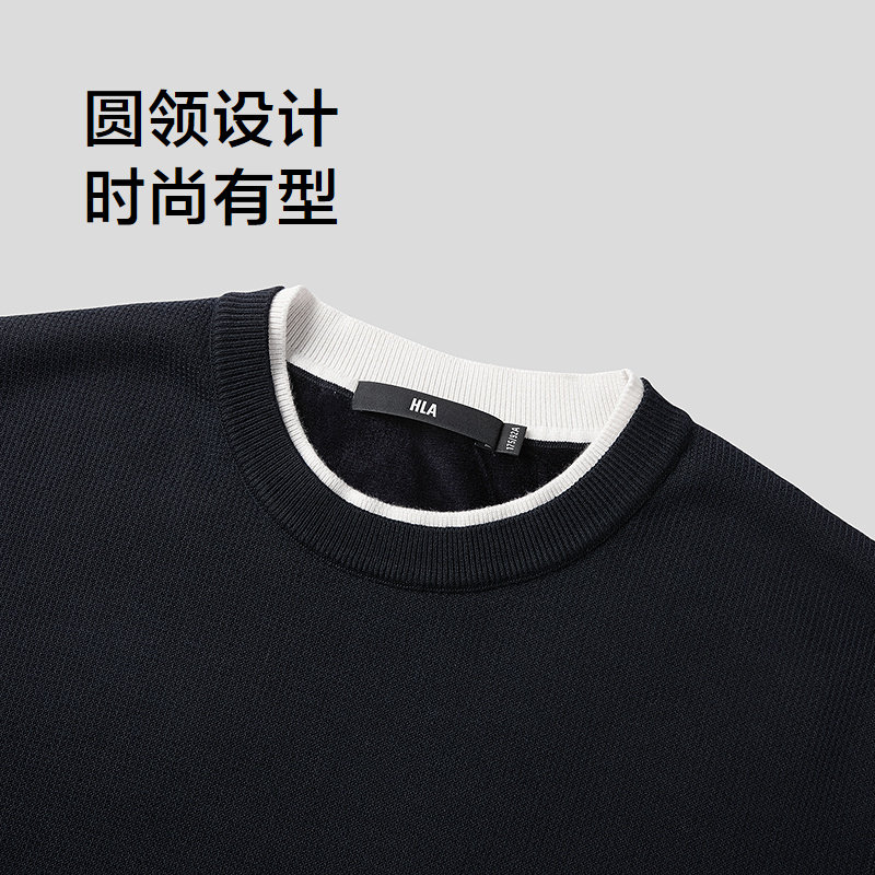HLA/海澜之家保暖加绒加厚针织衫25秋冬新款远红外圆领提花毛衣男