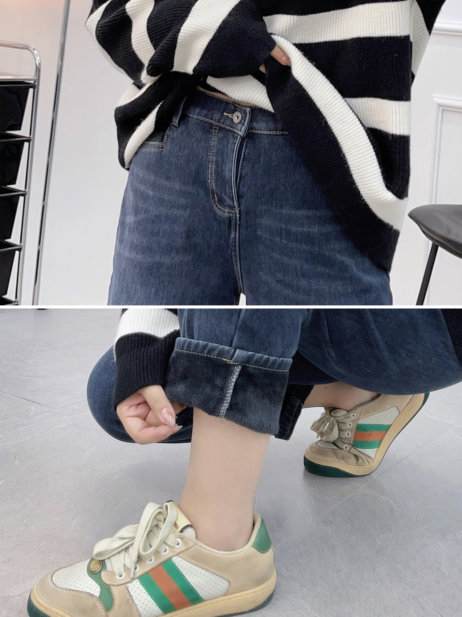2022秋冬季胖mm新款加大码韩版弹力高腰显瘦百搭加绒哈伦裤牛仔裤