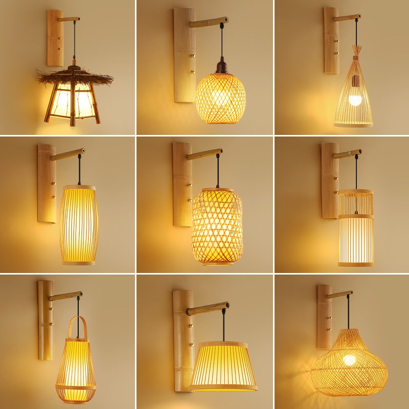 竹编壁灯新中式餐厅墙壁挂灯楼梯阳台过道走廊床头复古竹艺装饰灯